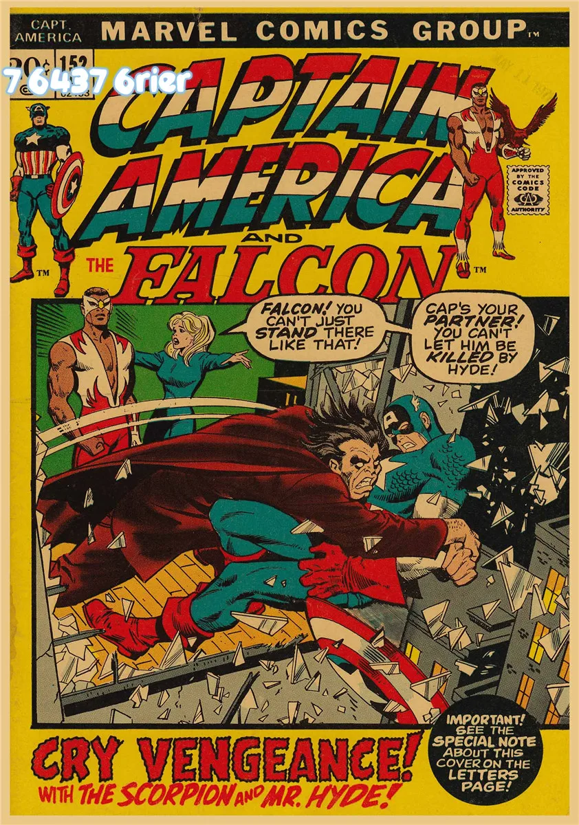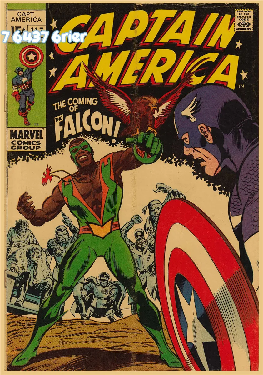 Домашнее украшение на стену, принты печати живопись в стиле ретро крафт-бумага плакат супергероев Marvel Капитан Америка чехол с героями комиксов WallSticker