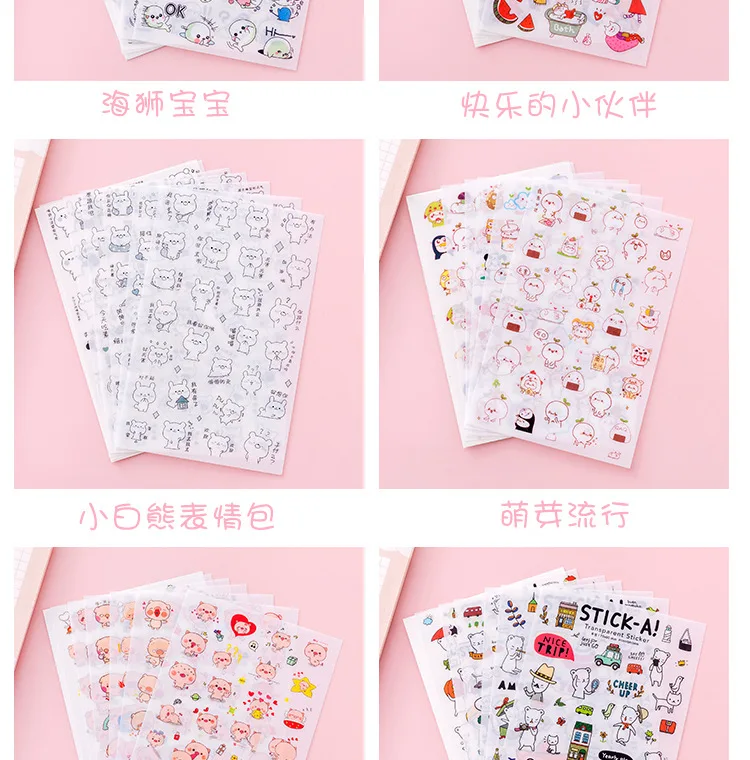Набор симпатичных наклеек для скрапбукинга, 6 листов, Набор наклеек шт., товары для рукоделия