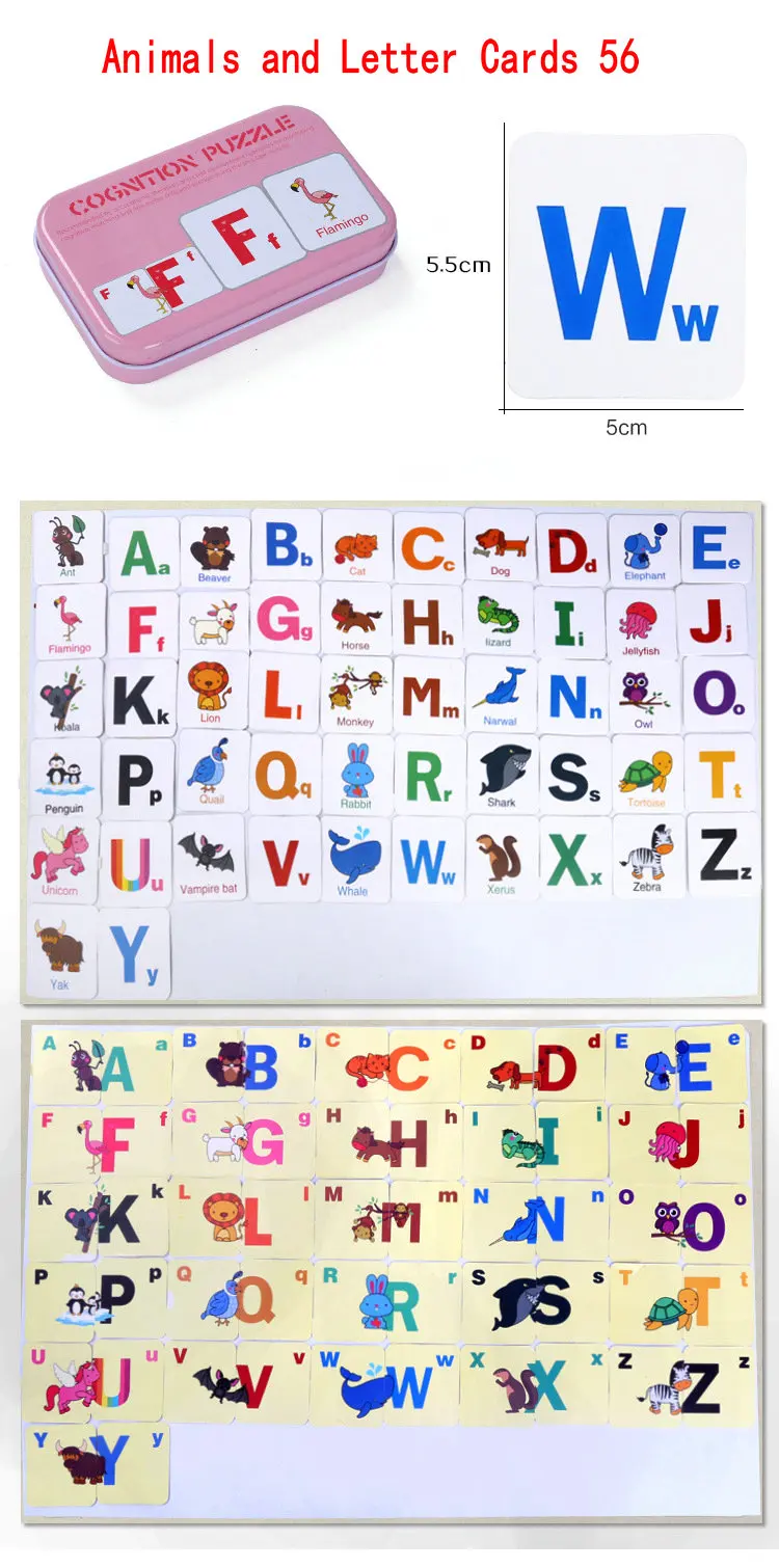 Детский Развивающий пазл, игрушки, железная коробка, игра-головоломка, карта обучения, английские фрукты, животные, трафик, образовательные наклейки Монтессори