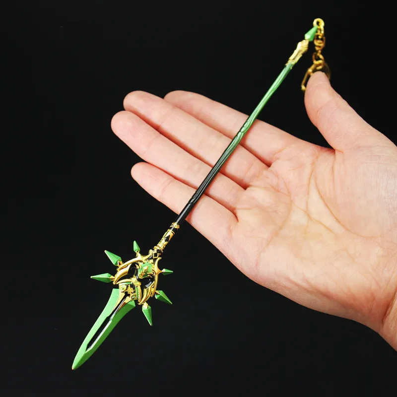 [Имя]: Лезвие оружия Genshin[Размер]: 25,5 см/17 см[Материал]: Материал из цинкового сплава, не ржавеет (держатель инструмента изготовлен из пластика)