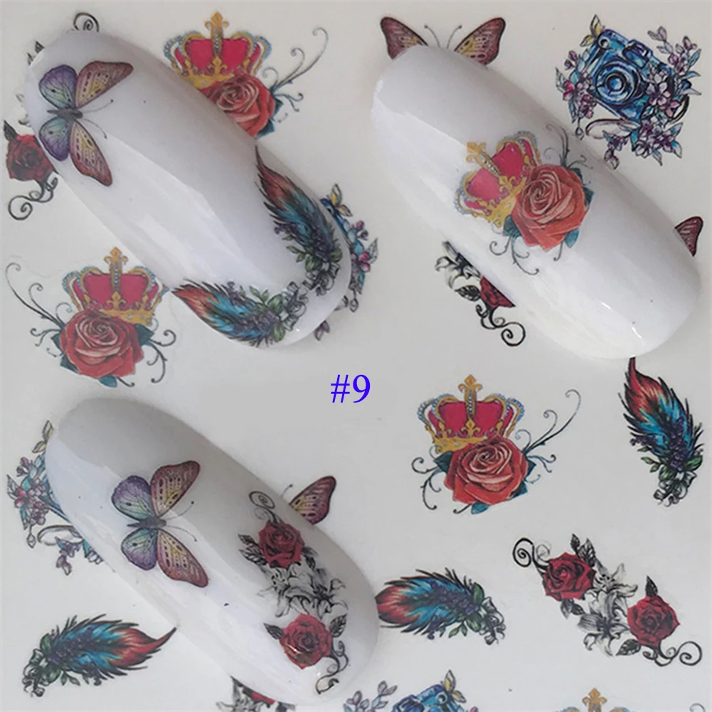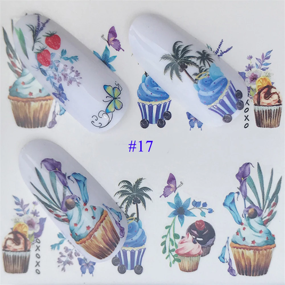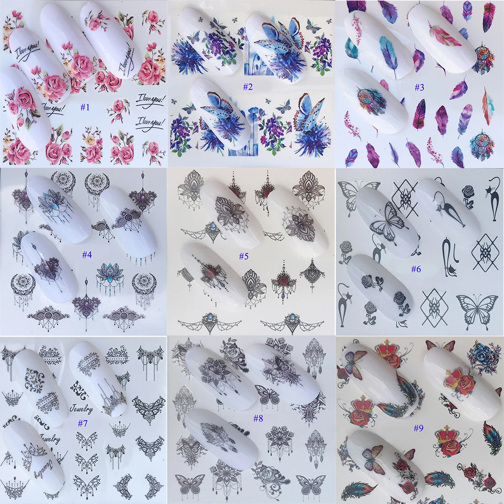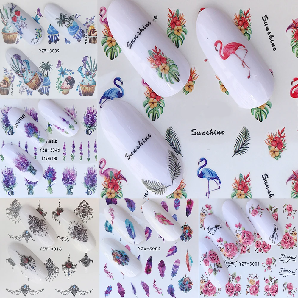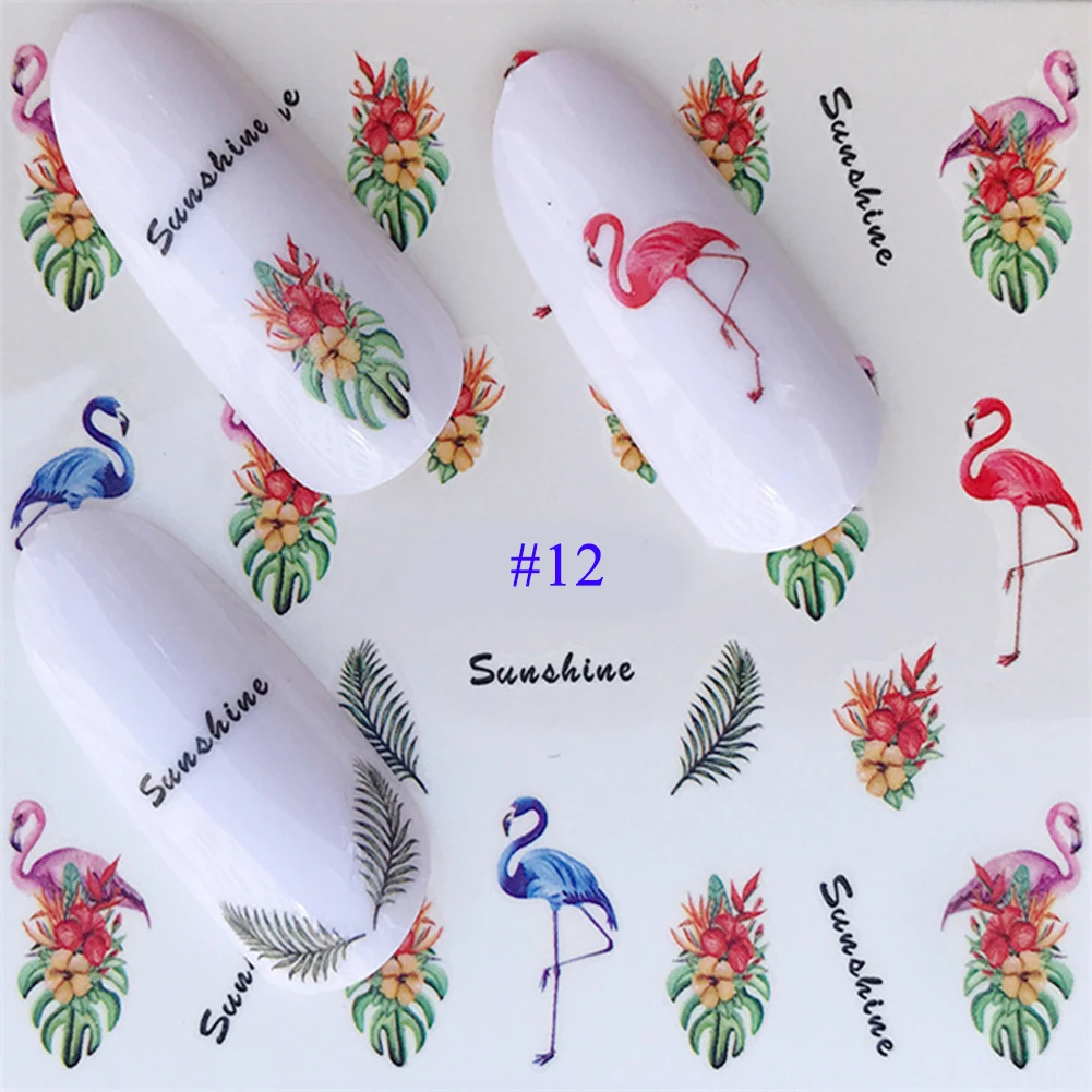 2021 новые наклейки для дизайна ногтей Лот черные листья цветочные Фламинго водные переводки маникюрные украшения для ногтей летние слайдеры фольга