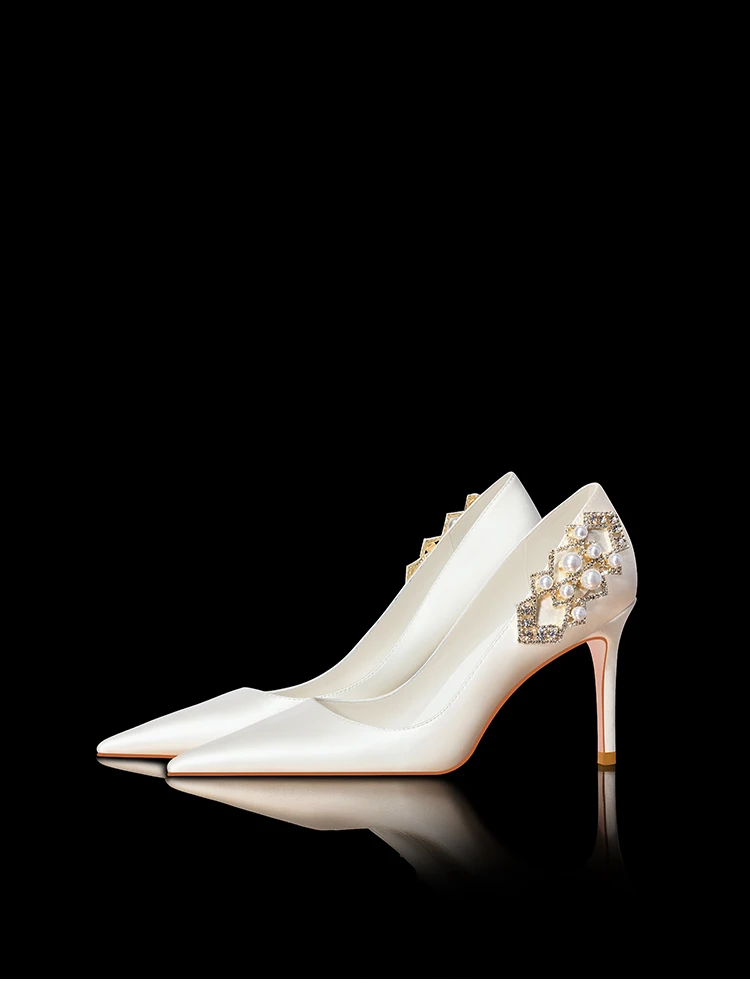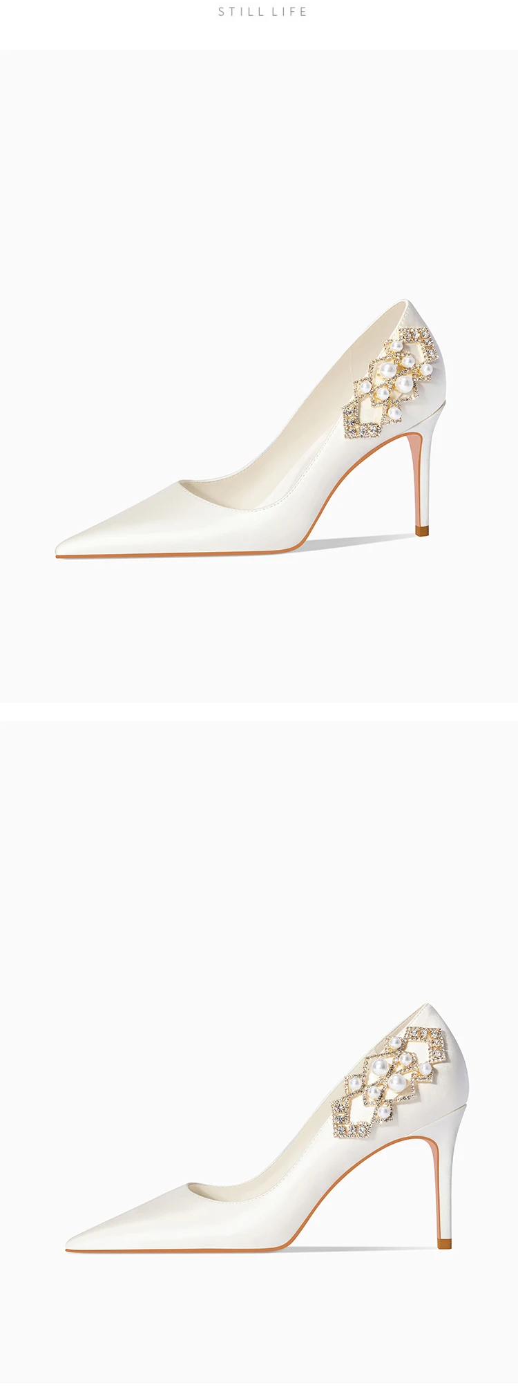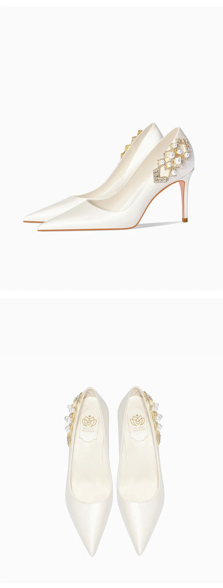 Женские туфли-лодочки на высоком каблуке VAIR MUDO, 2021, шелковые Романтические свадебные туфли со светящимся острым носком, белые модные туфли для женщин 003