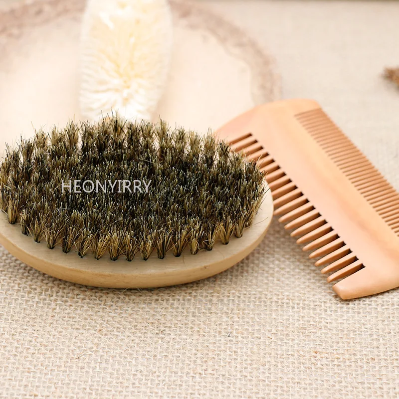 Высокое качество, мягкая щетина кабана, деревянная щетка для бороды, парикмахерский инструмент для бритья, мужской набор расчесок для усов с подарочной сумкой, набор расчесок для волос с бородой