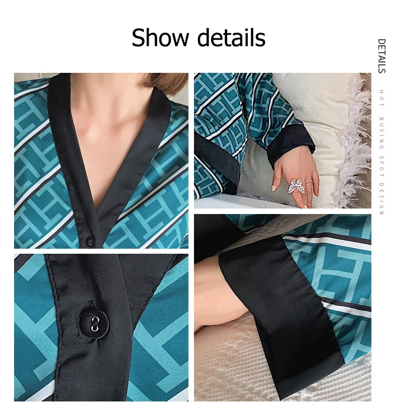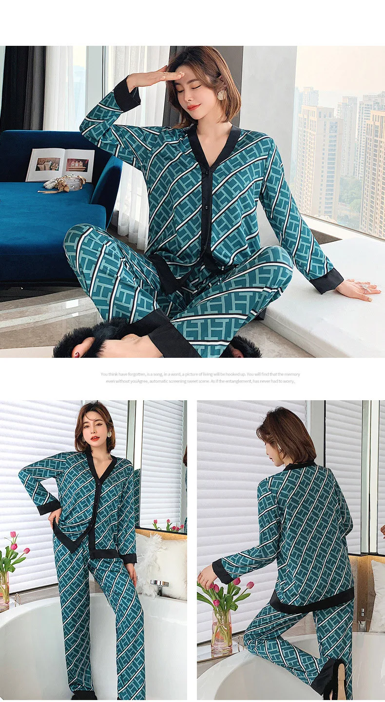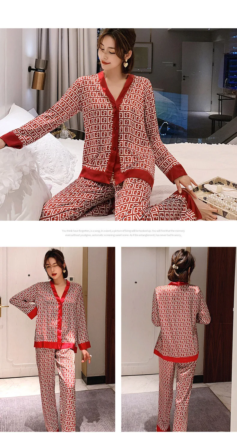 пижама женская Брючные костюмы нижнее белье женское домашняя одежда женскаялетний Пижамный комплект Женский из 2 предметов, одежда для сна, брюки с длинным рукавом, пикантная атласная Шелковая пижама, домашняя одежда