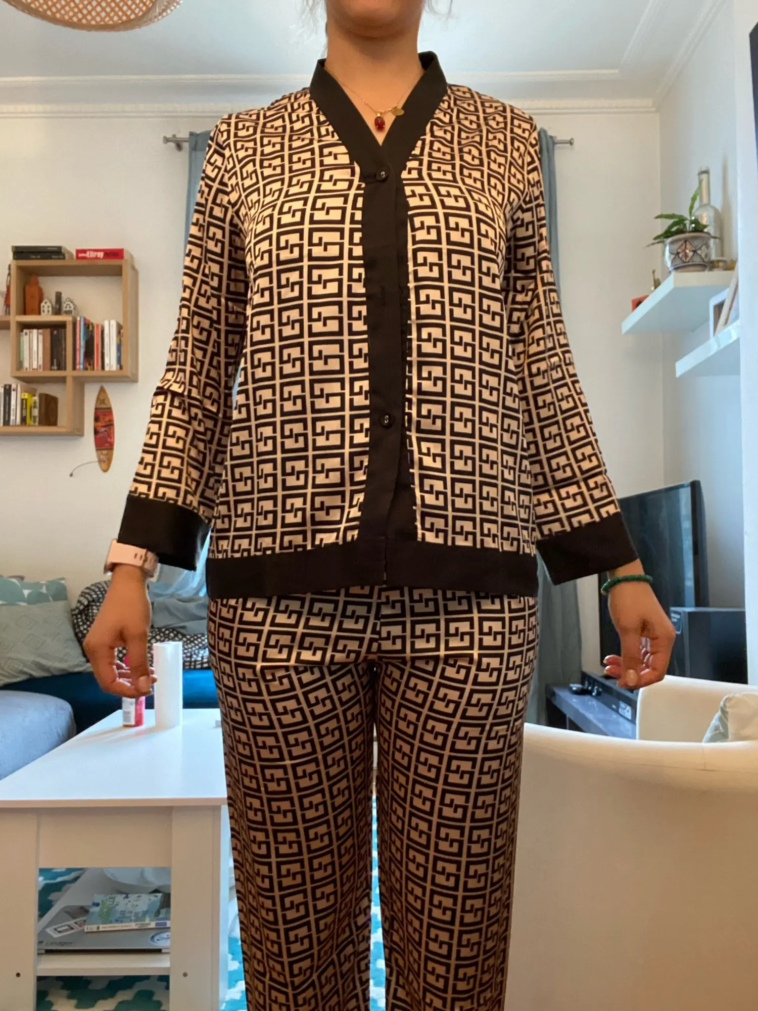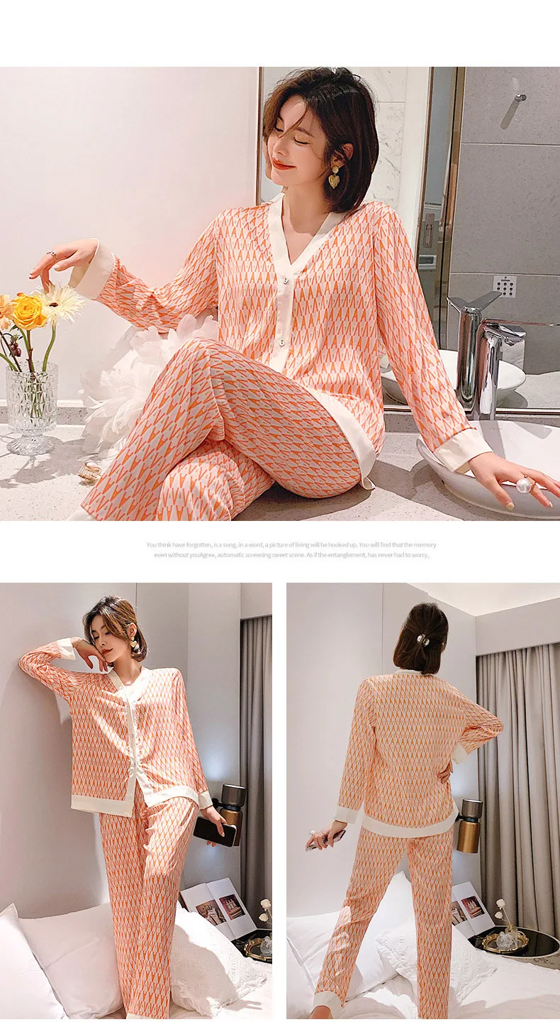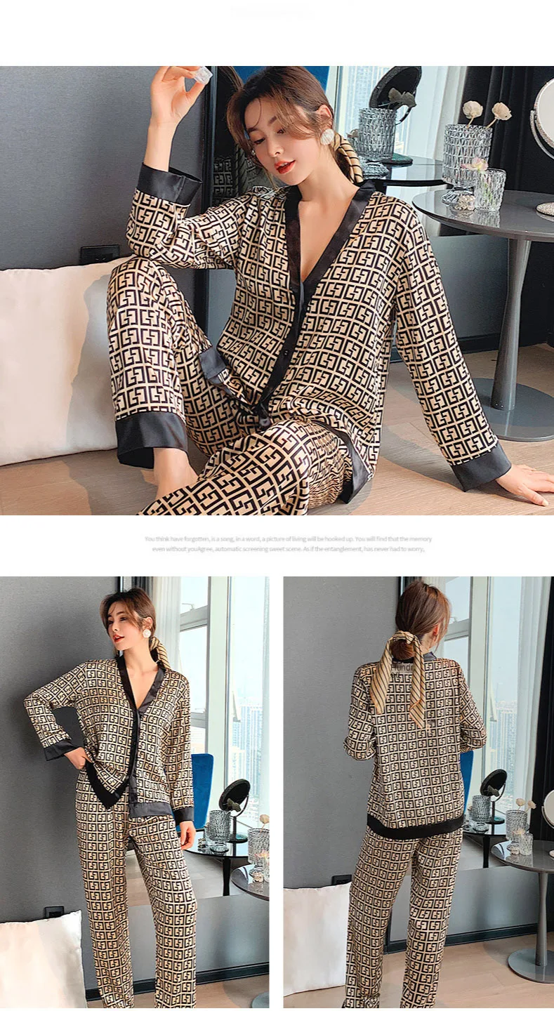 пижама женская Брючные костюмы нижнее белье женское домашняя одежда женскаялетний Пижамный комплект Женский из 2 предметов, одежда для сна, брюки с длинным рукавом, пикантная атласная Шелковая пижама, домашняя одежда