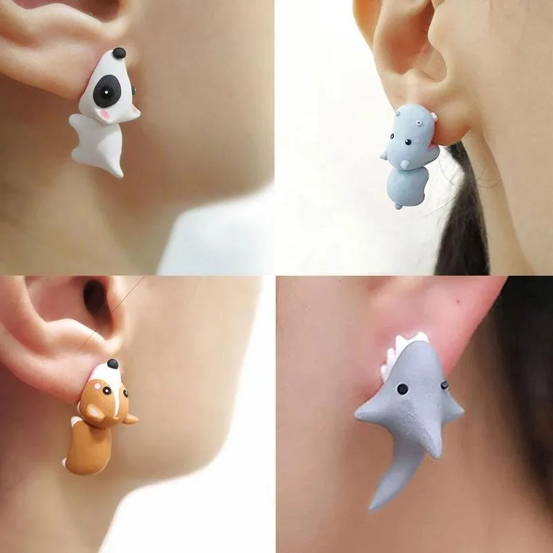 Серьги в виде маленького животного, динозавра, корейские серьги-гвоздики ручной работы из полимерной глины в виде динозавра, модные милые серьги в виде мультяшных 3d-животных