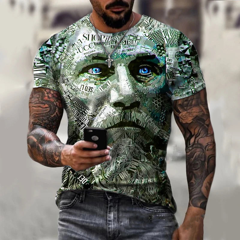 Футболка мужская оверсайз с коротким рукавом, круглым вырезом и принтом воина
