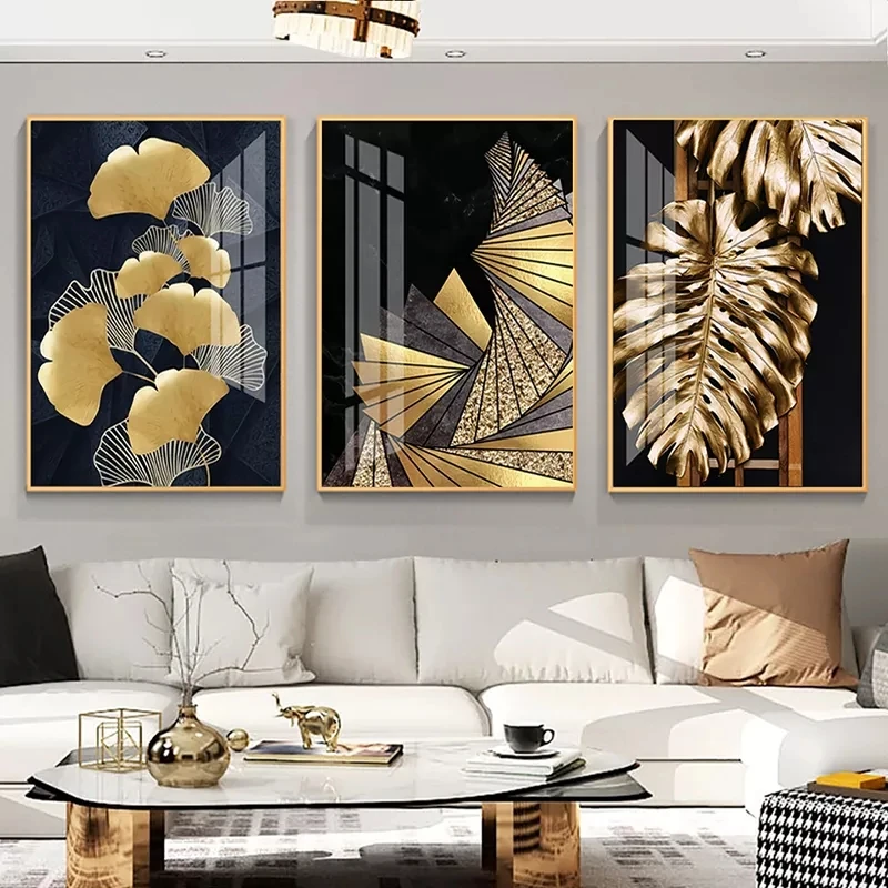 Картина на холсте, с изображением золотых листьев, в скандинавском ...