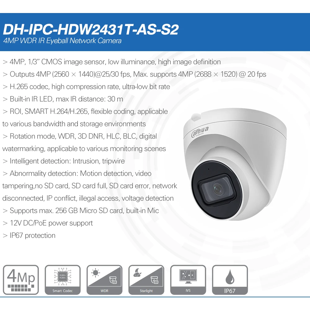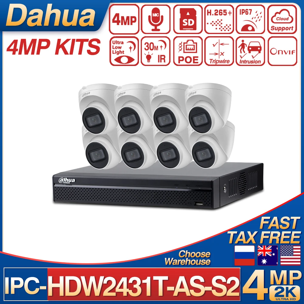Dahua оригинальные комплекты 8 шт. HDW2431T-AS-S2 и NVR4108HS-8P-4KS2/L 8POE 1HDD