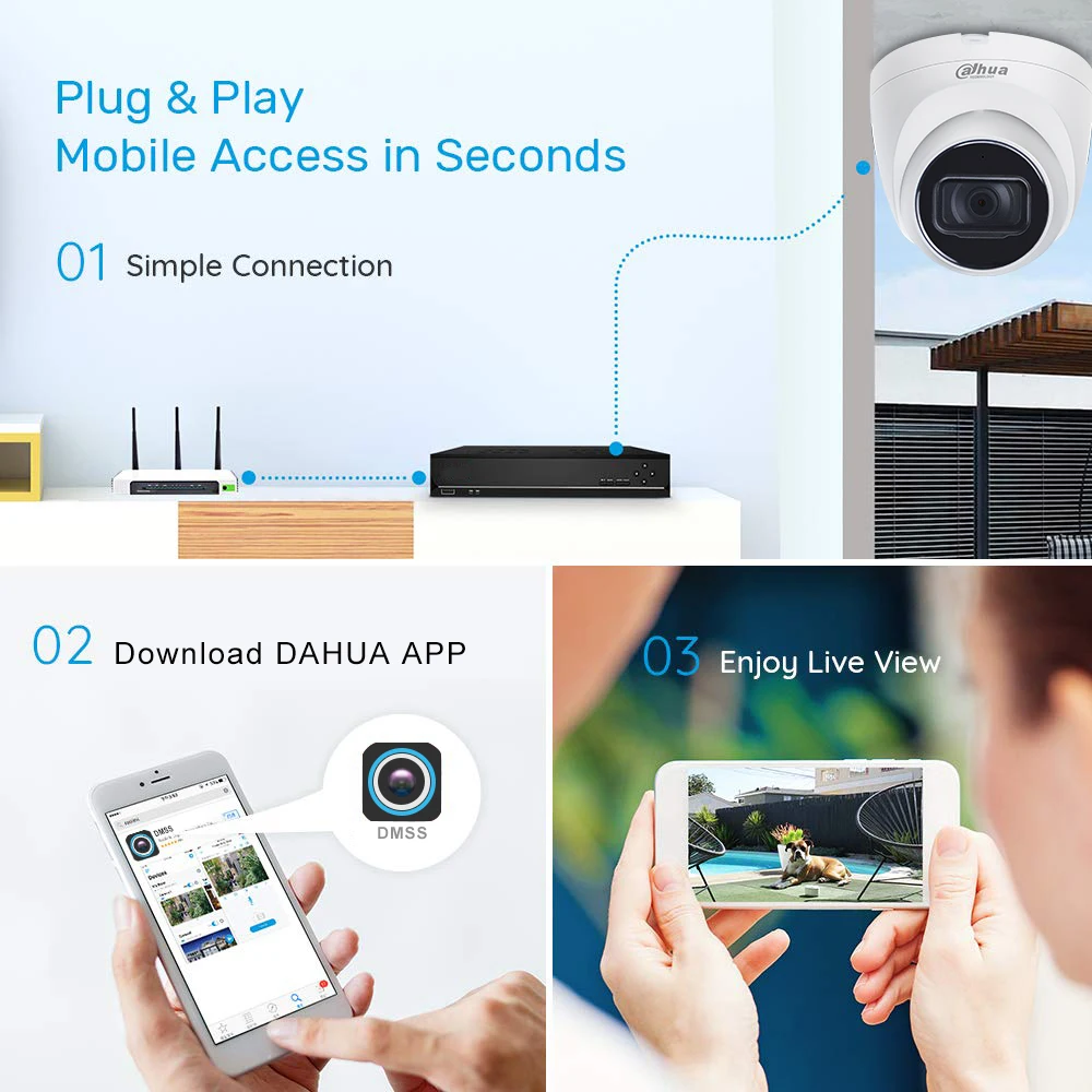 Оригинальные комплекты Dahua, 8 шт., стандартная IP-камера, 2K, встроенный микрофон, слот для SD-карты + L 8POE 1HDD 2K система видеонаблюдения