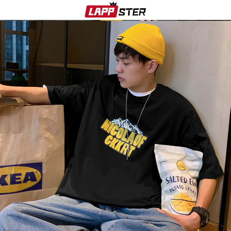 LAPPSTER Мужская негабаритная Японская уличная одежда футболки с от...