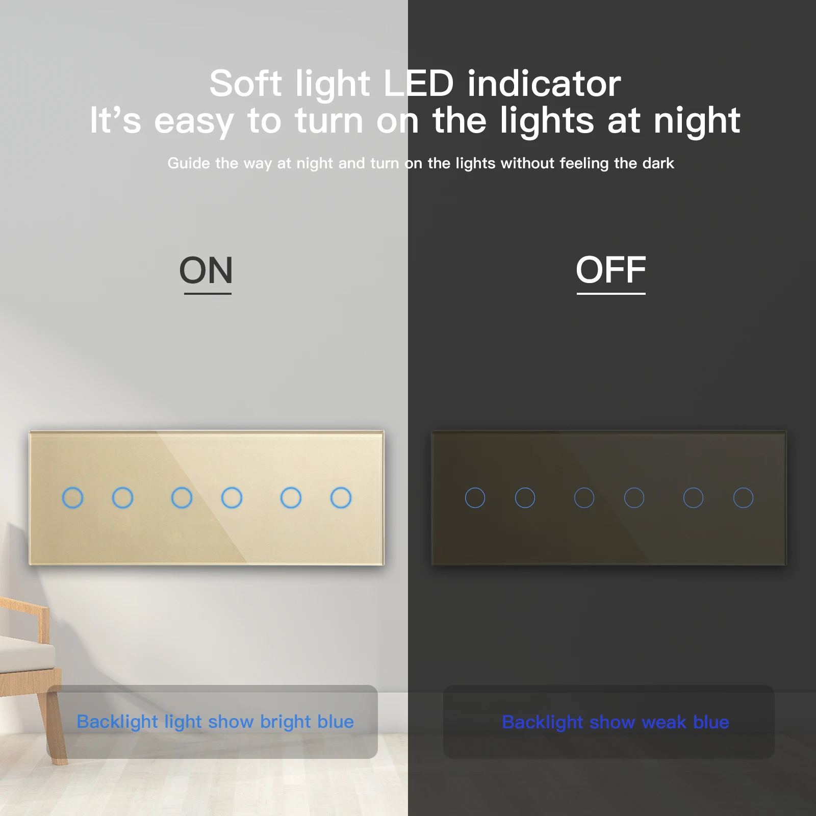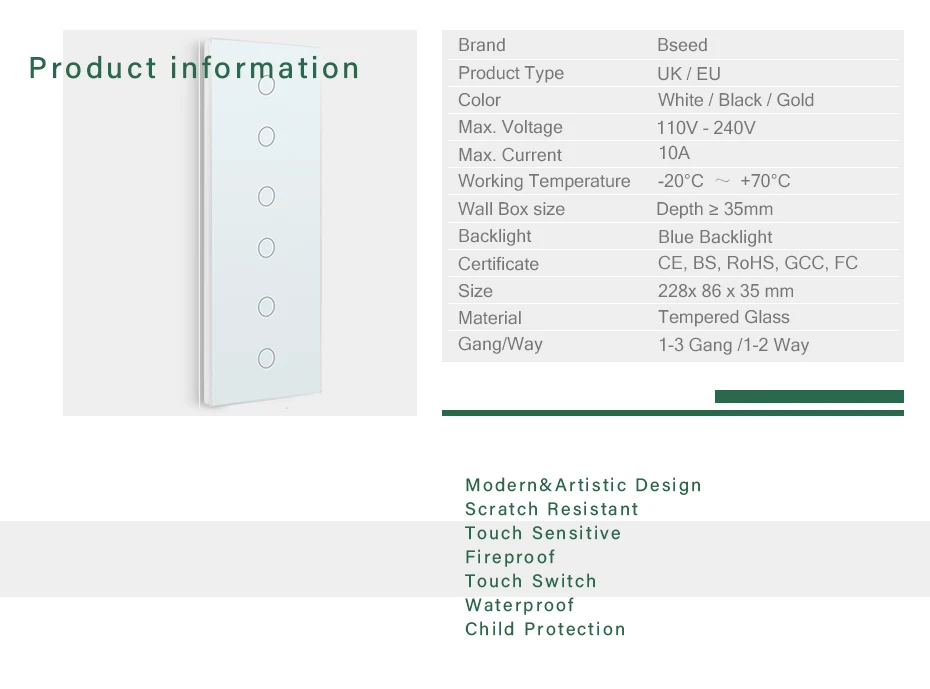 Сенсорный светильник ель света Bseed, настенный переключатель, 6 клавиш, 1 канал, 300 Вткомплект, сенсорный переключатель из хрустального стекла, водонепроницаемый, без нейтрального