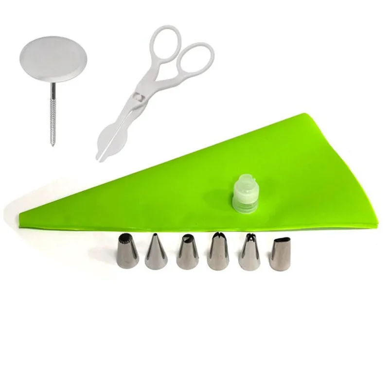 10 шт.компл. Силиконовые DIY глазировки Крем кондитерский мешок + 6 шт насадка для декорирования торта Советы украшения инструменты + Nail Lifter иглы + цветок ножницы