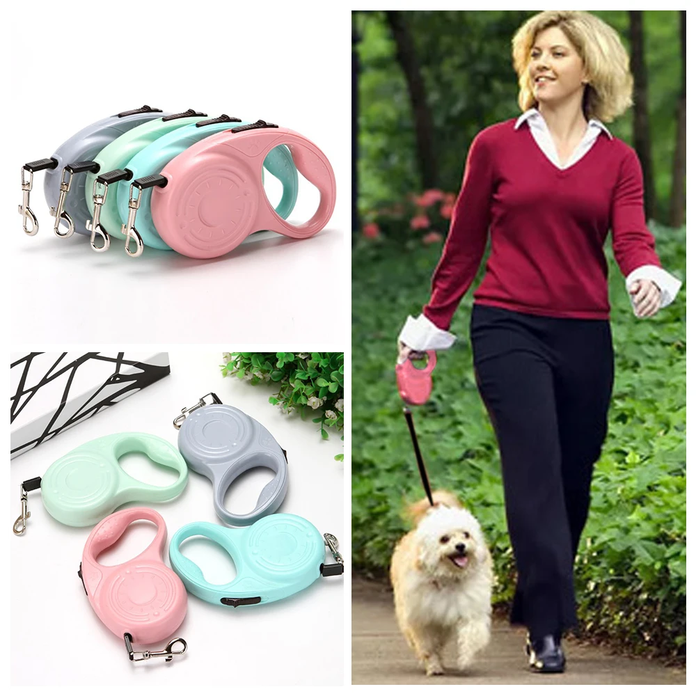 Рулетка-поводок для собак, нейлоновая долговечная Автоматическая удлиняющаяся, для прогулок и бега с щенками, 3 м, 5 м