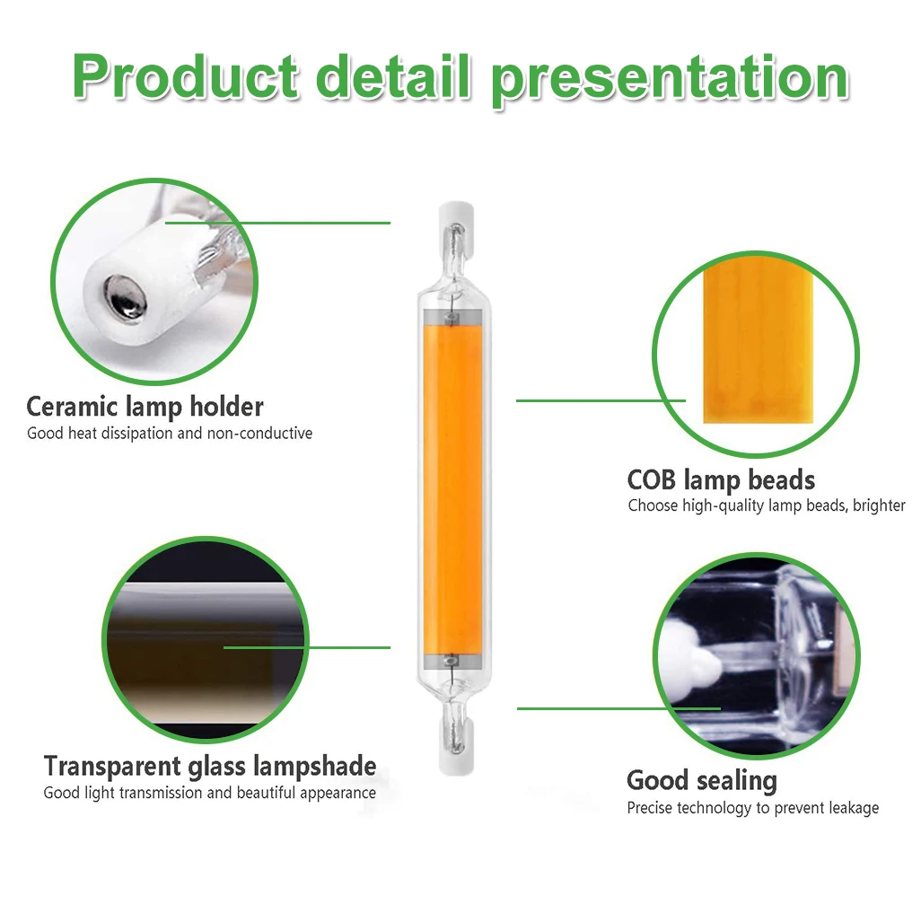 С регулируемой яркостью R7S светодиодный лампочка Коб Стекло трубка 78 мм 20 Вт 118 мм предназначены на замену галогеновым лампам, 10W J78 J118 Lamparda диод Точечный светильник 110V 220V лампа