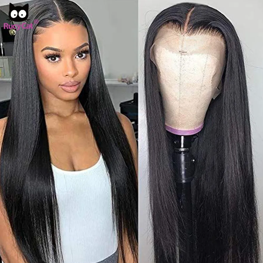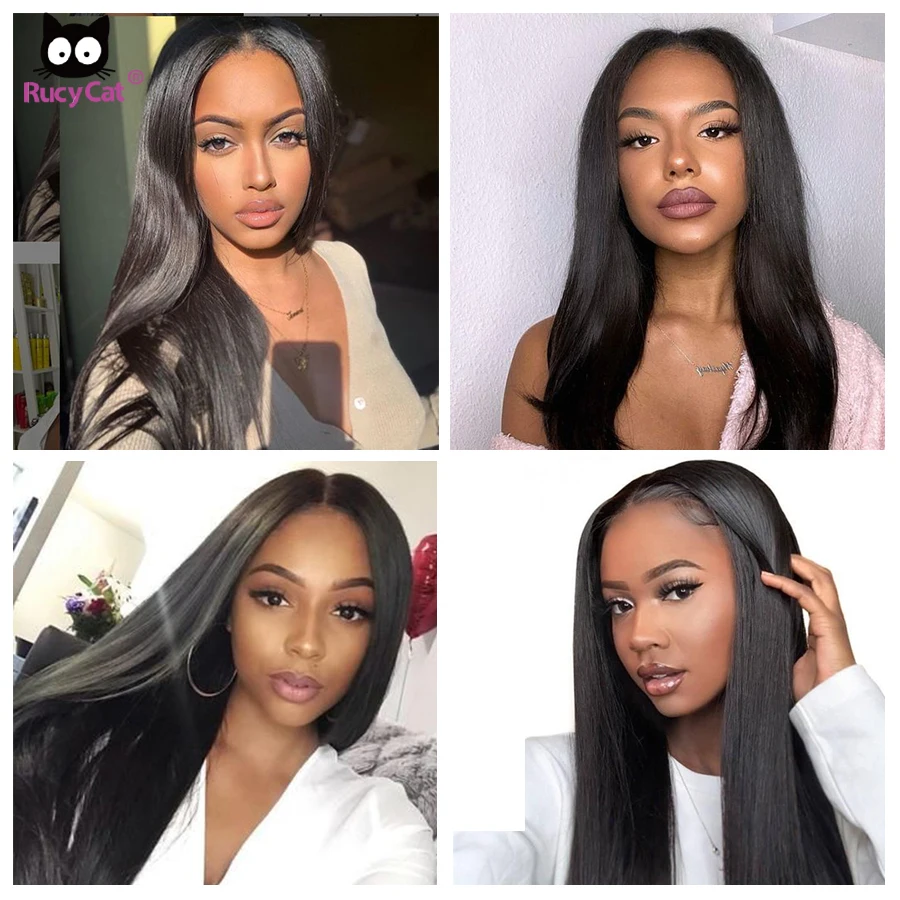 Прямой парик RucyCat на сетке спереди 13x6, Парик HD на сетке спереди, предварительно выщипанный парик на сетке спереди, парики из человеческих волос, бразильский парик на сетке спереди 30 дюймов