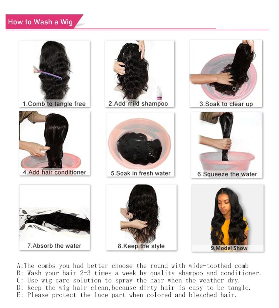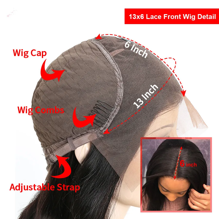 Парик WowQueen из натуральных волос, плотность 180%, 13x6 дюймов, и...