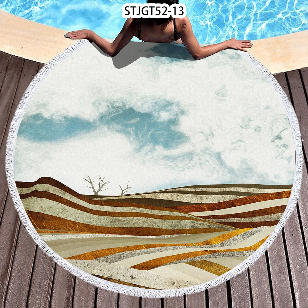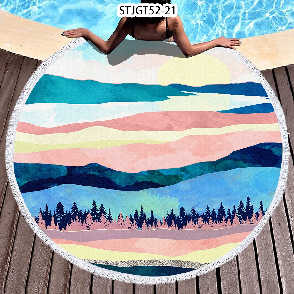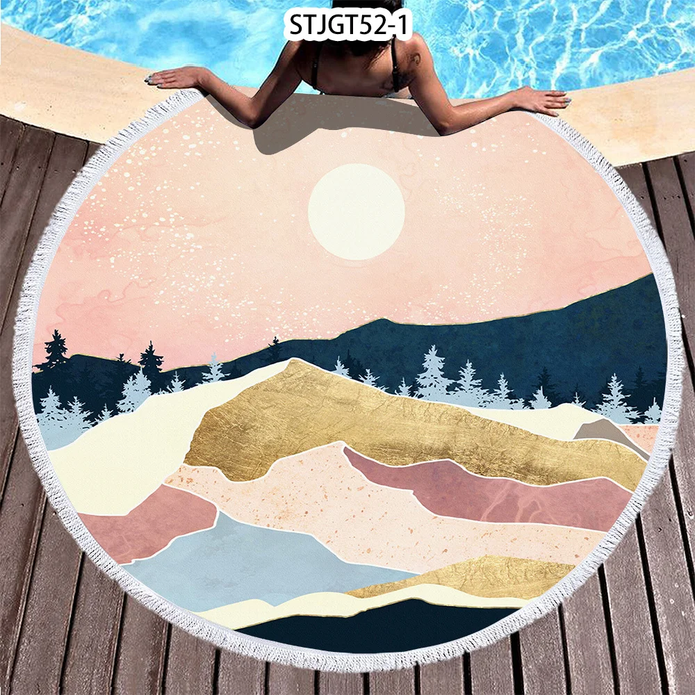 Полотенце из микрофибры, с рисунком заката, Пляжное, круглое, 150 см