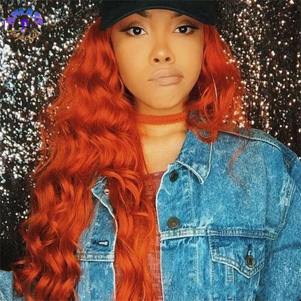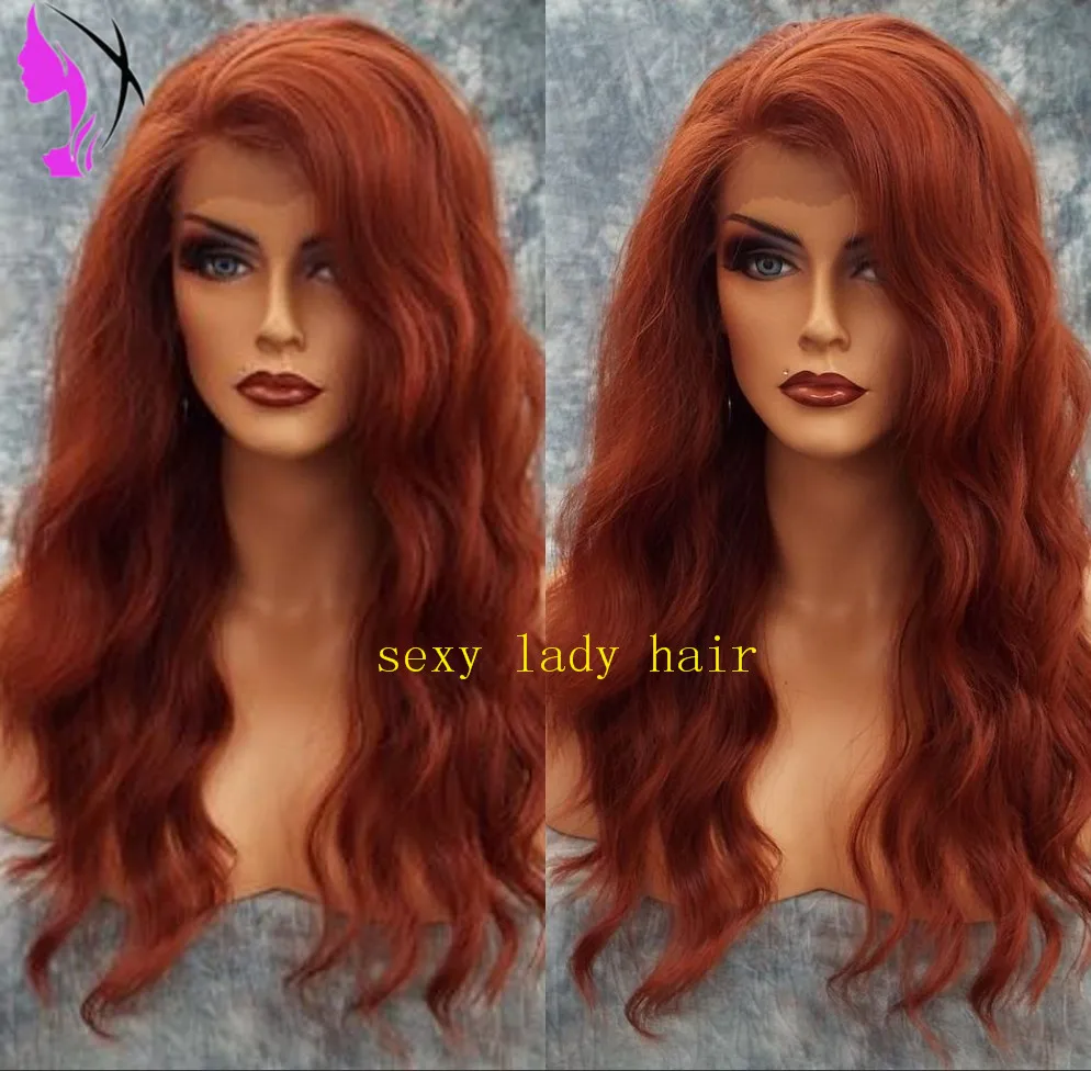 Бесплатная часть Медь красный парик длинные волнистые синтетические Синтетические волосы на кружеве парики для Для женщин Термостойкое волокно каштановыежелтыерозовые, Косплэй парик