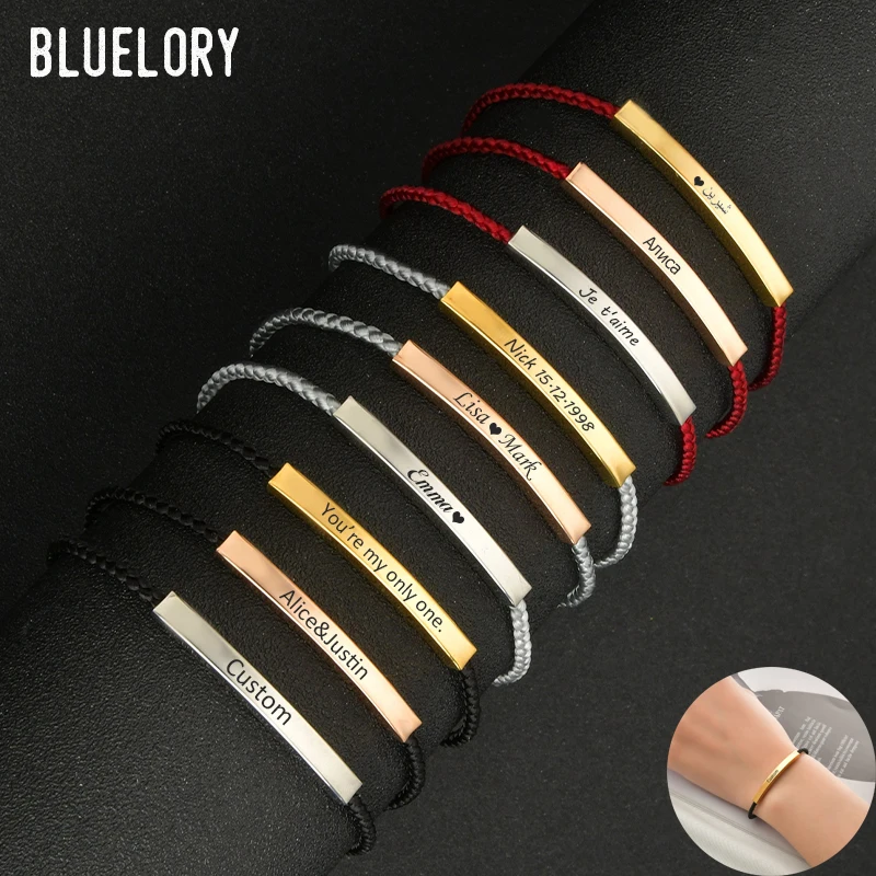 Bluelory Подгонянная нержавеющая сталь имя ID барная Веревка Цепи Браслеты из нержавеющей стали для женщин, ювелирное изделие, подарок на день рождения