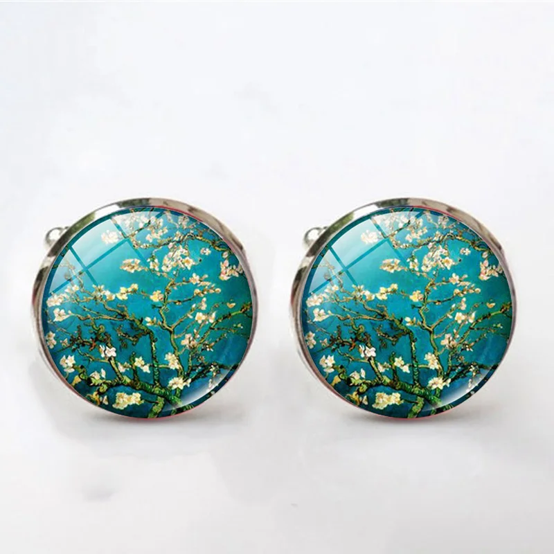 Картины маслом Ван Гога мужские запонки для рубашек высокое качество Звездная ночь Подсолнухи с живописным узором Изысканный Мужской Запонки кнопка подарки