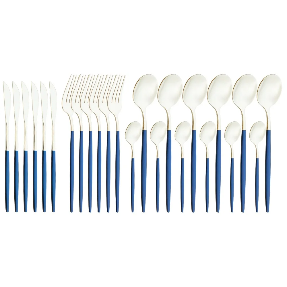 24 шт. цвета: золотистый, матовый набор столовых приборов Нержавеющ...