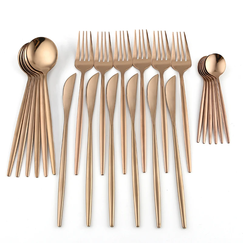 24 шт.компл. Нержавеющаясталь столовые приборы золотой набор посуды...