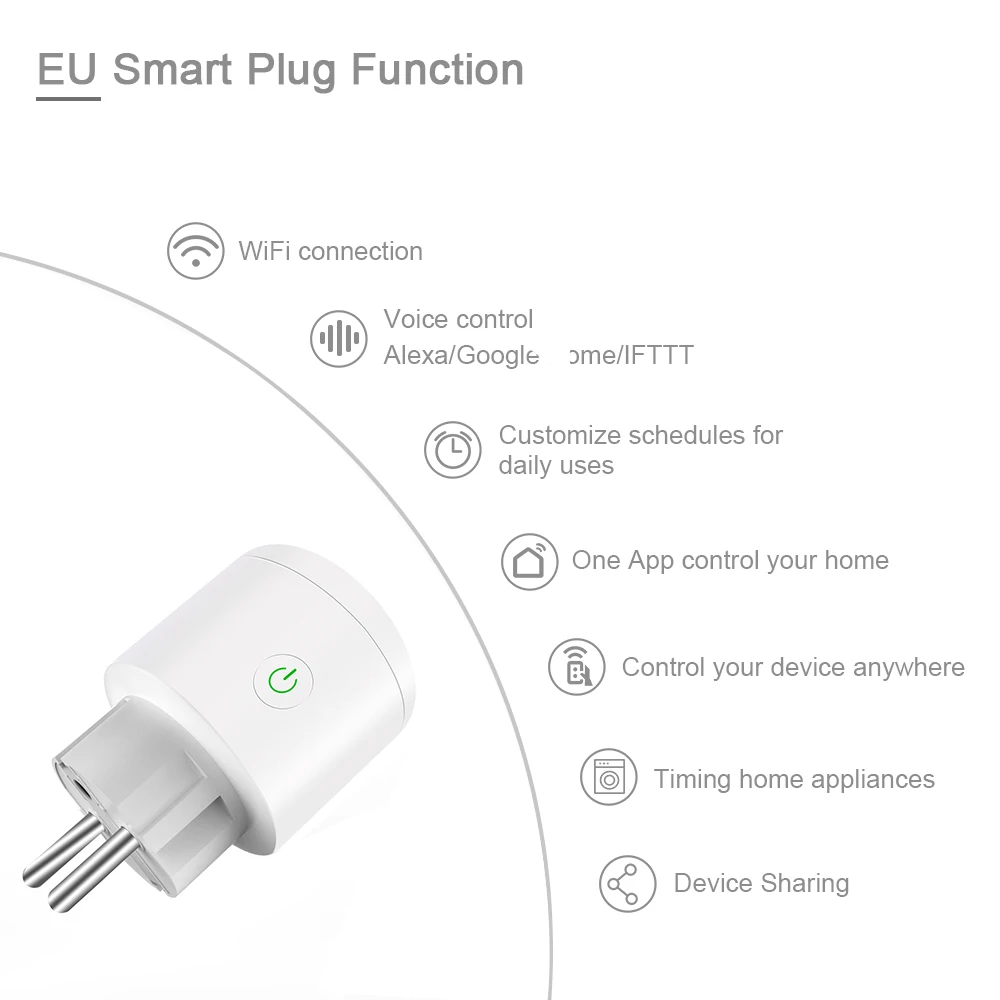 Wi-Fi Смарт-розетка GOOJODOQ, 16 А, 220 В, беспроводной пульт дистанционного управления, монитор питания, таймер, розетка для Google Home, Alexa