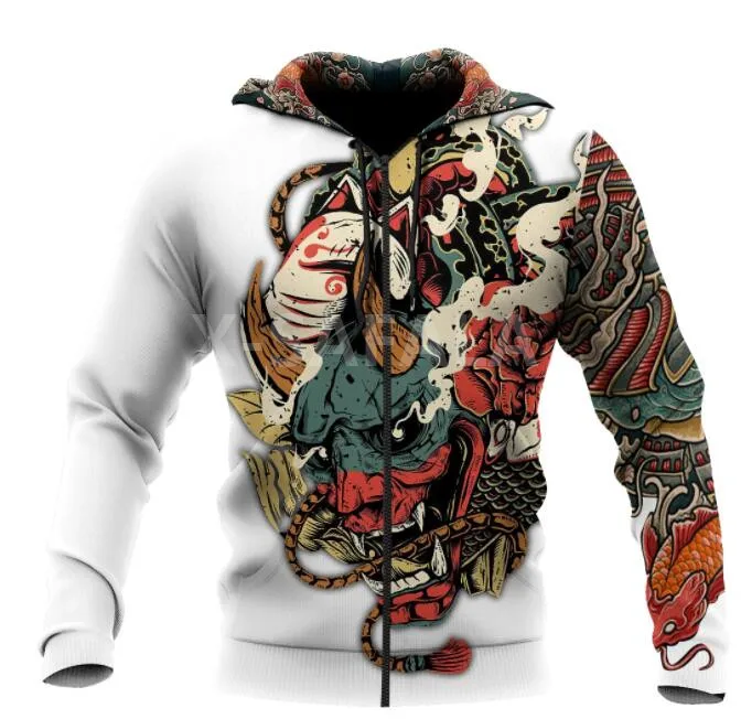 Толстовка с 3D-принтом и татуировкой Oni Mask для мужчин и женщин, ...