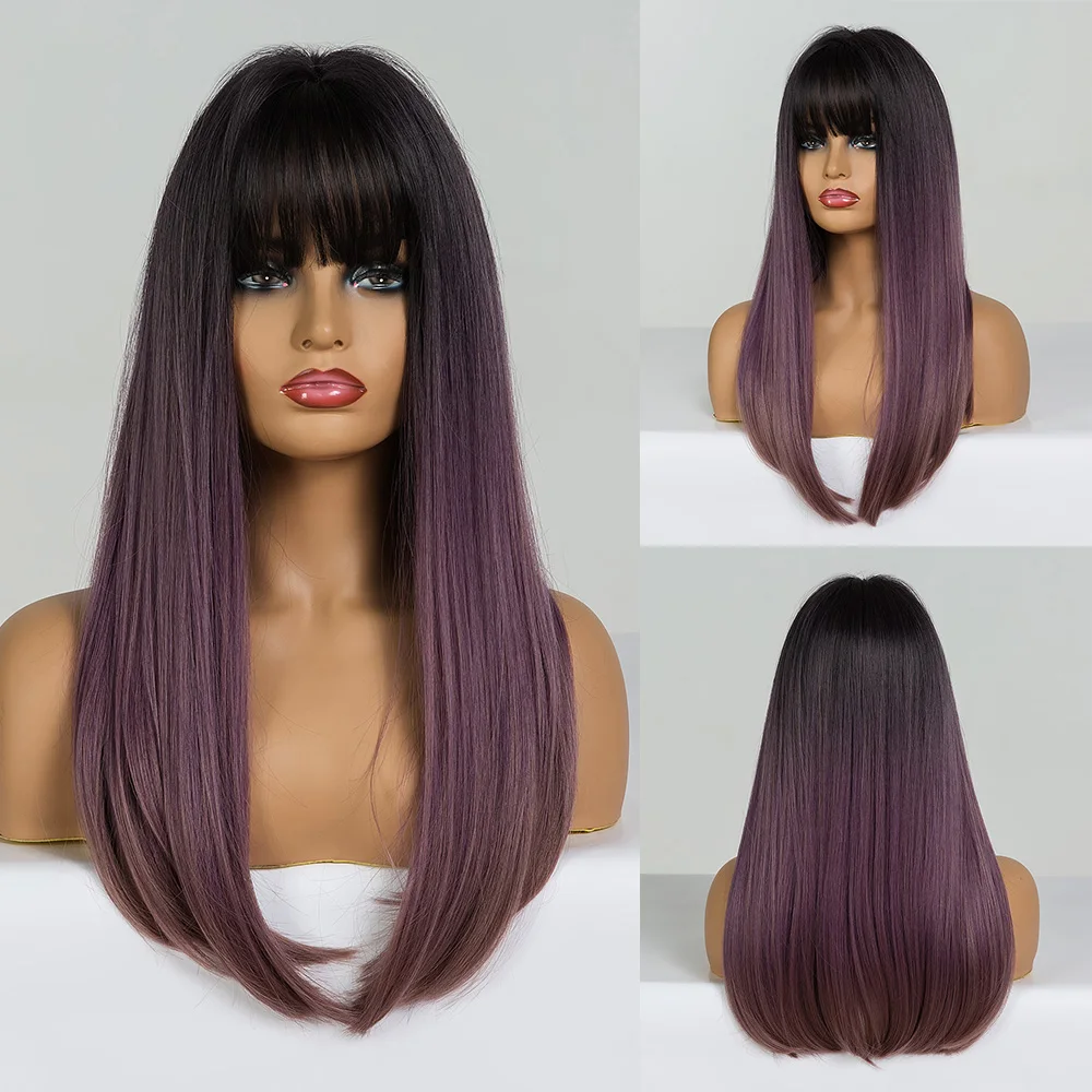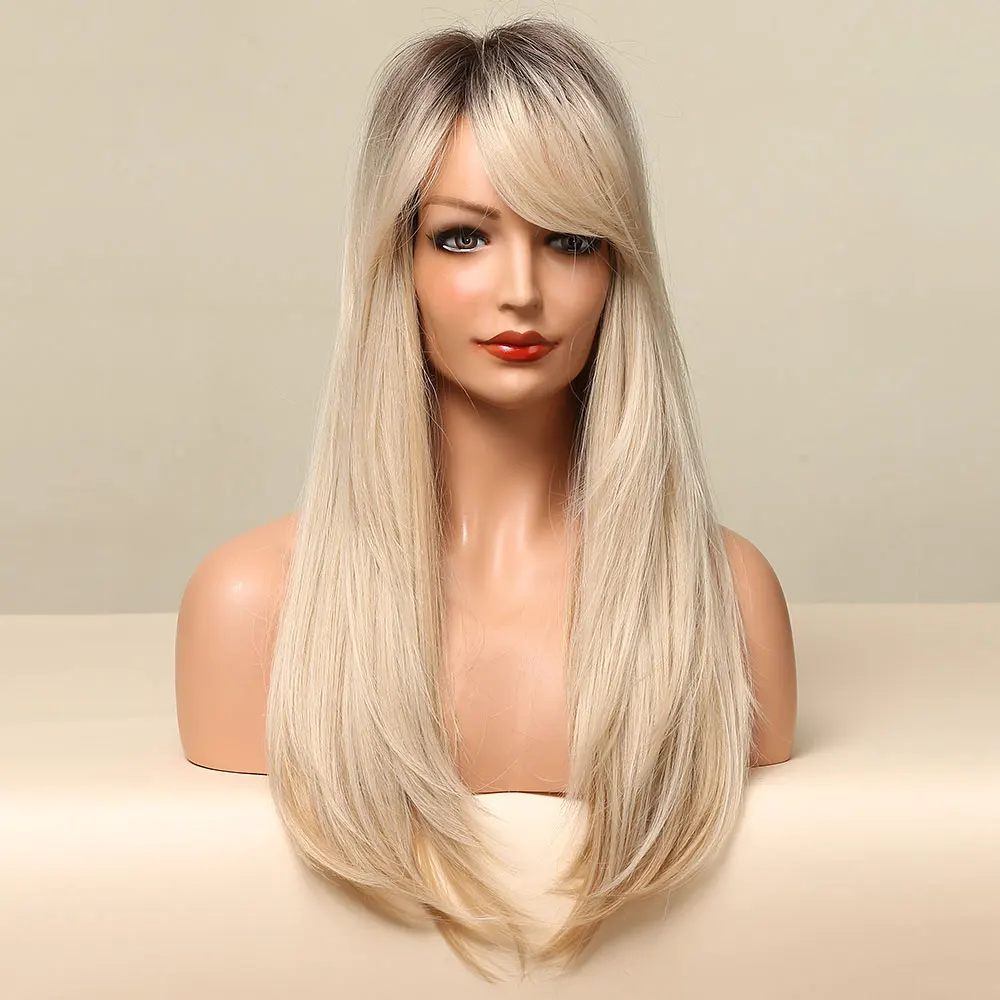 GEMMA Омбре коричневый блонд длинные прямые синтетические парики с челкой косплей парик для женщин высокая температура натуральные поддельные волосы