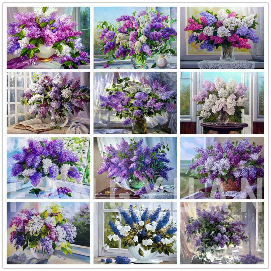 5D алмазная живопись сделай сам, ваза для вышивки крестиком в виде сиреневых цветов, полная квадратная круглая вышивка стразы, настенный художественный плакат, украшение для дома