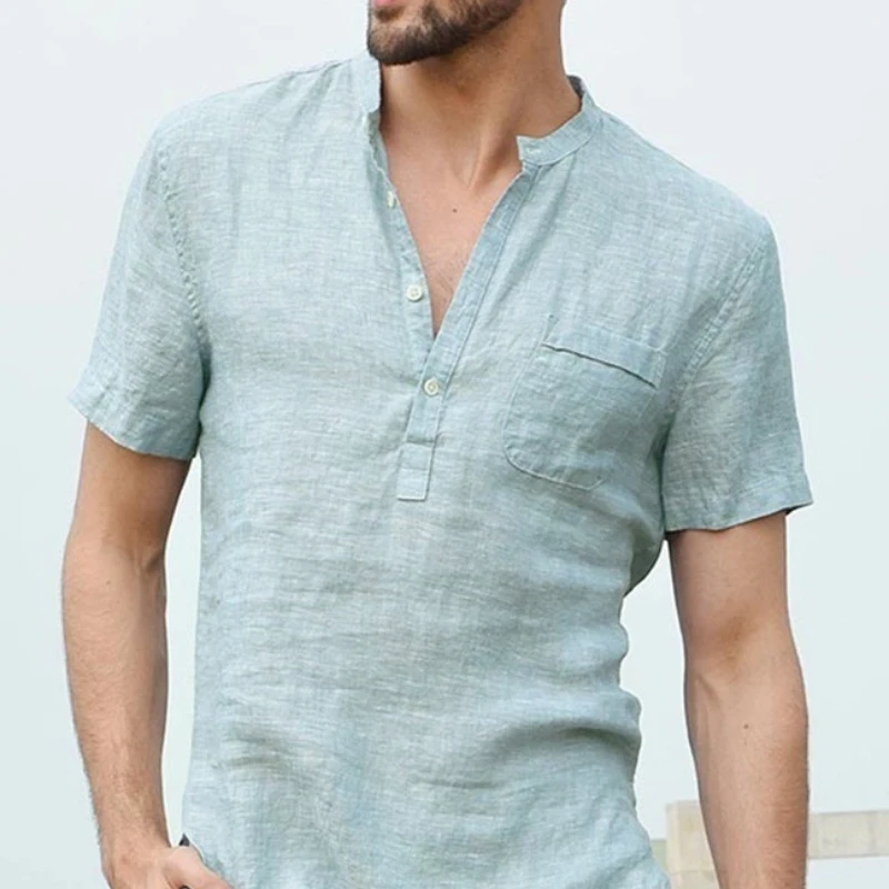 Футболка мужская с коротким рукавом, льняная Повседневная рубашка и...