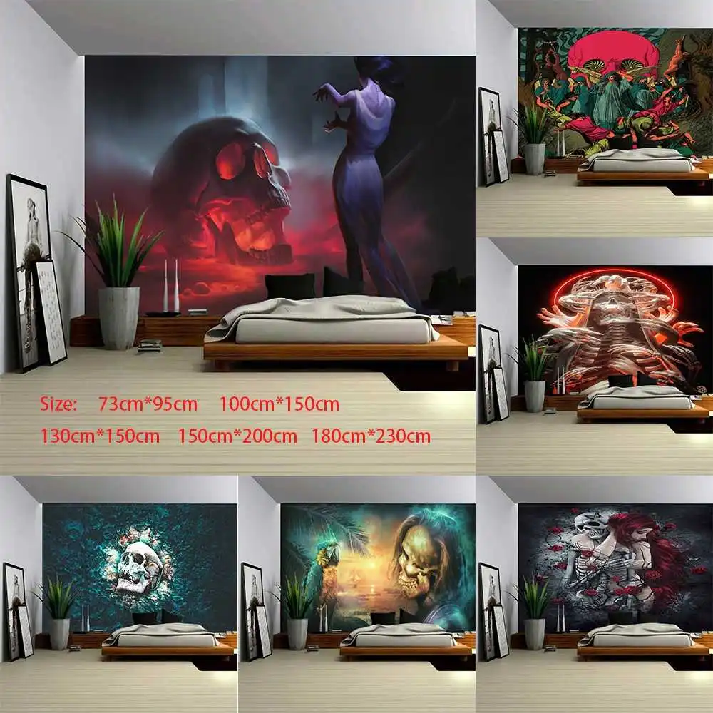 Психоделический Череп Печать гобелен настенный художественный Декор полиэстер хиппи пляжное Полотенца коврик скатерть для домашнего декора