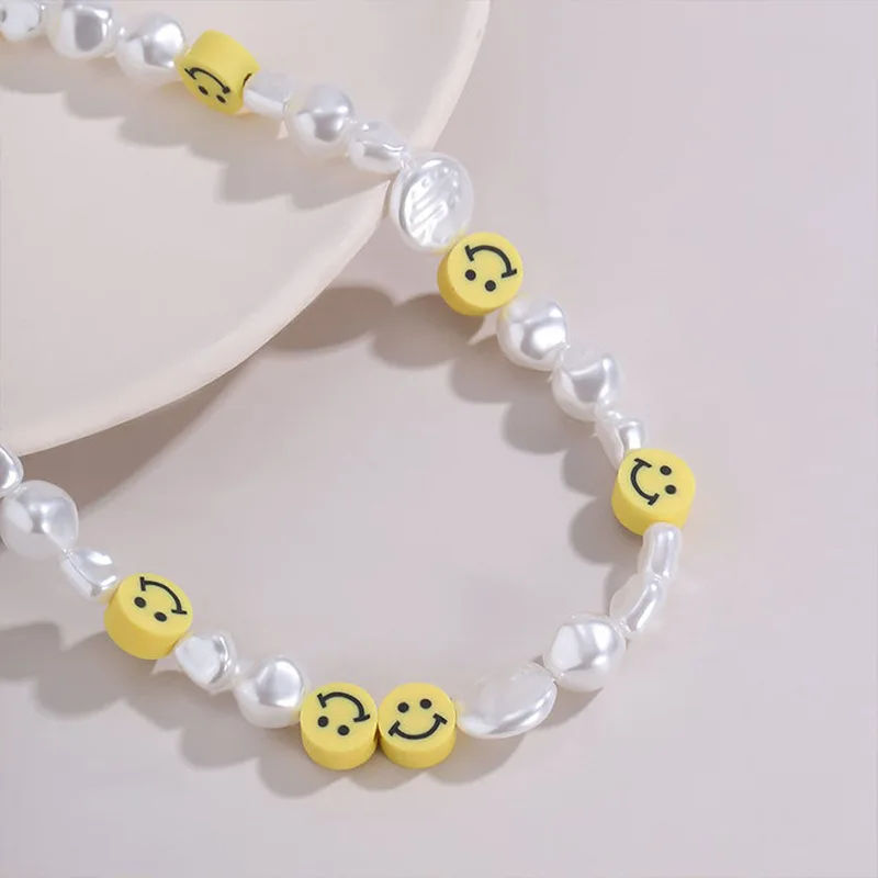 Женская цепочка, жемчужное ожерелье со смайликом, ожерелья из бисера