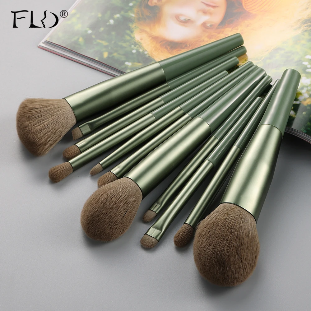 FLD зеленый Кисточки для макияжа из натурального материала Profesional пудры тени для бровей Make Up набор Красота косметический инструмент, макияж, губная помада