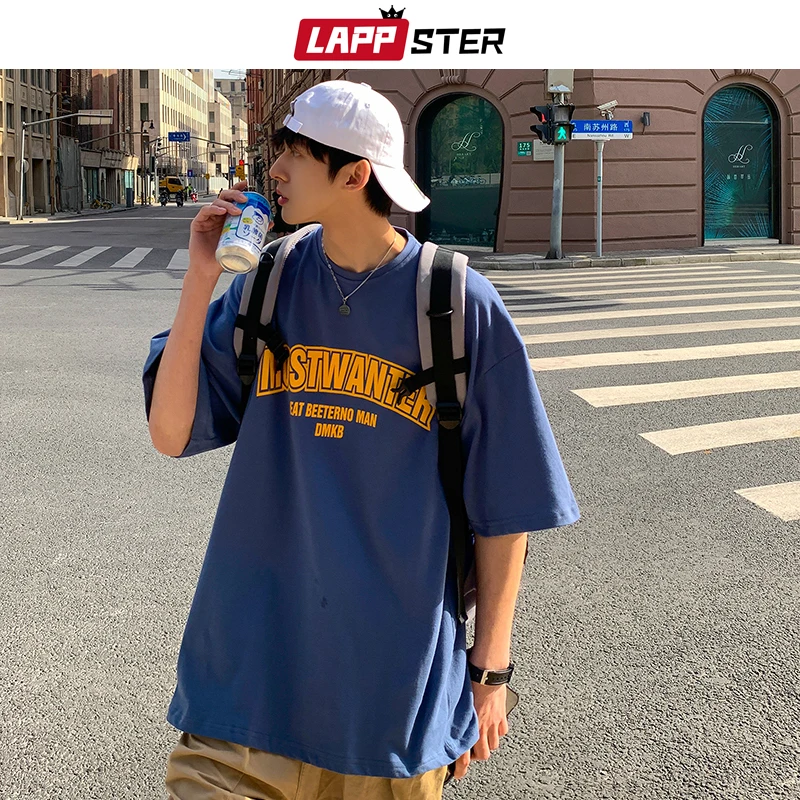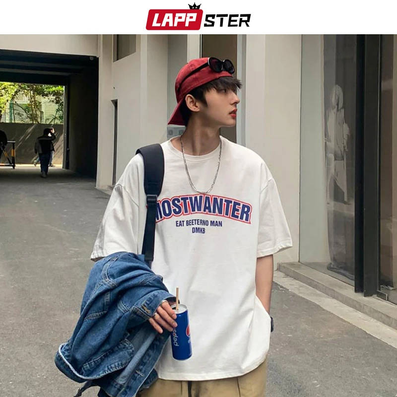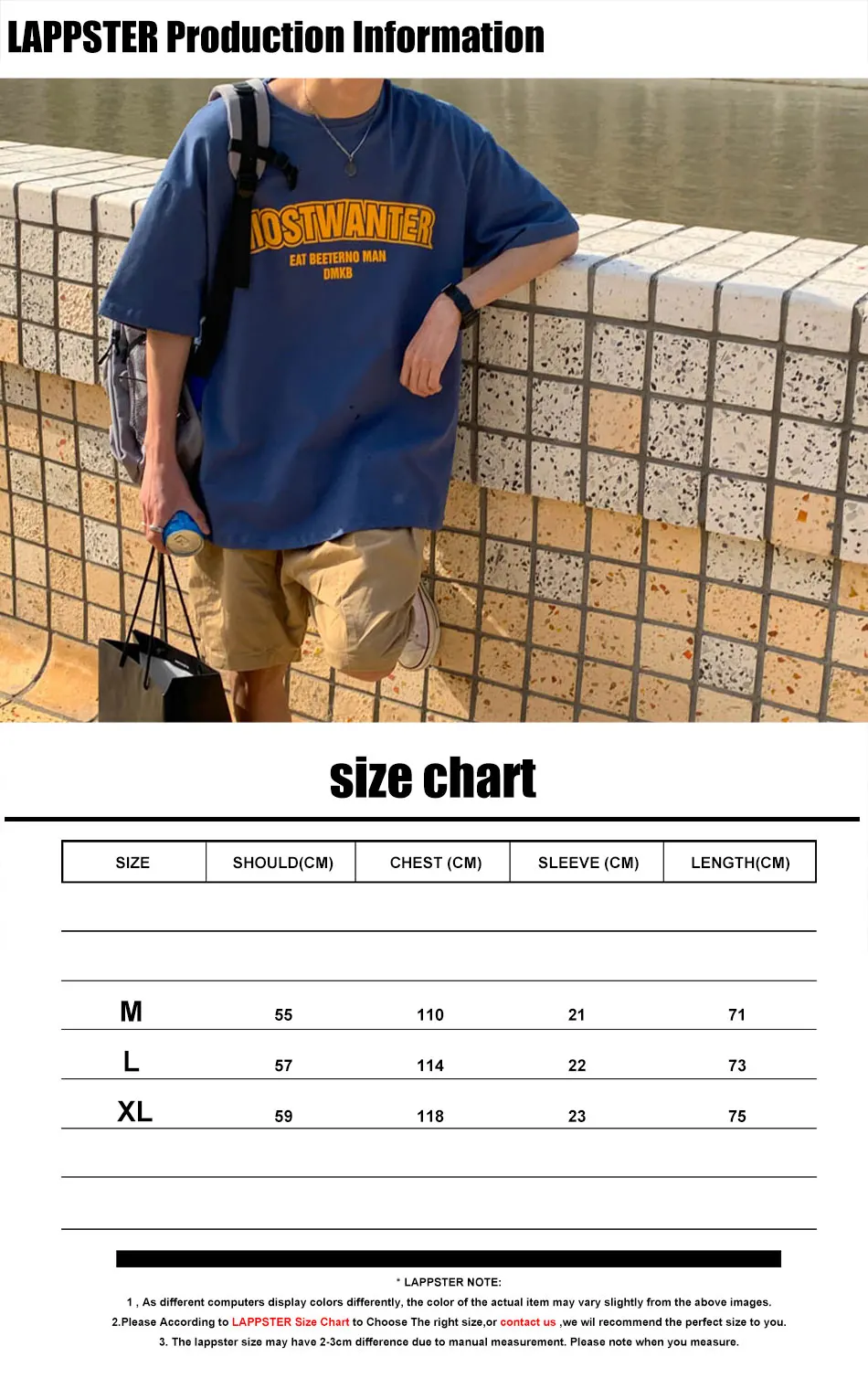 Футболка LAPPSTER мужская оверсайз с графическим принтом и надписью, модная уличная одежда в Корейском стиле, винтажная Свободная рубашка в стиле Харадзюку, лето 2021