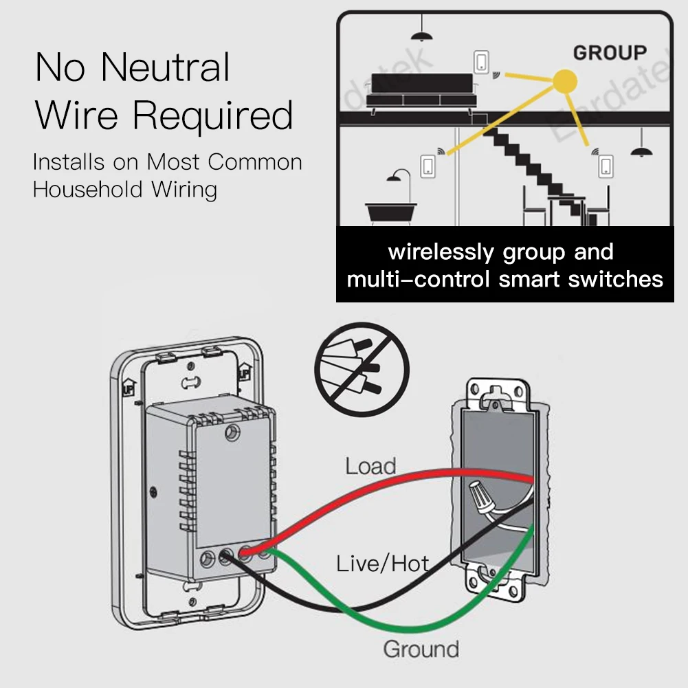 5. Без нейтральный провод и только за 1 Путь цепи как однополюсный выключатель; Поддерживает только 2,4G сеть; Включает в себя полную 2-годовая гарантия и 60 дней гарантия возврата денег для полного удовлетворения.