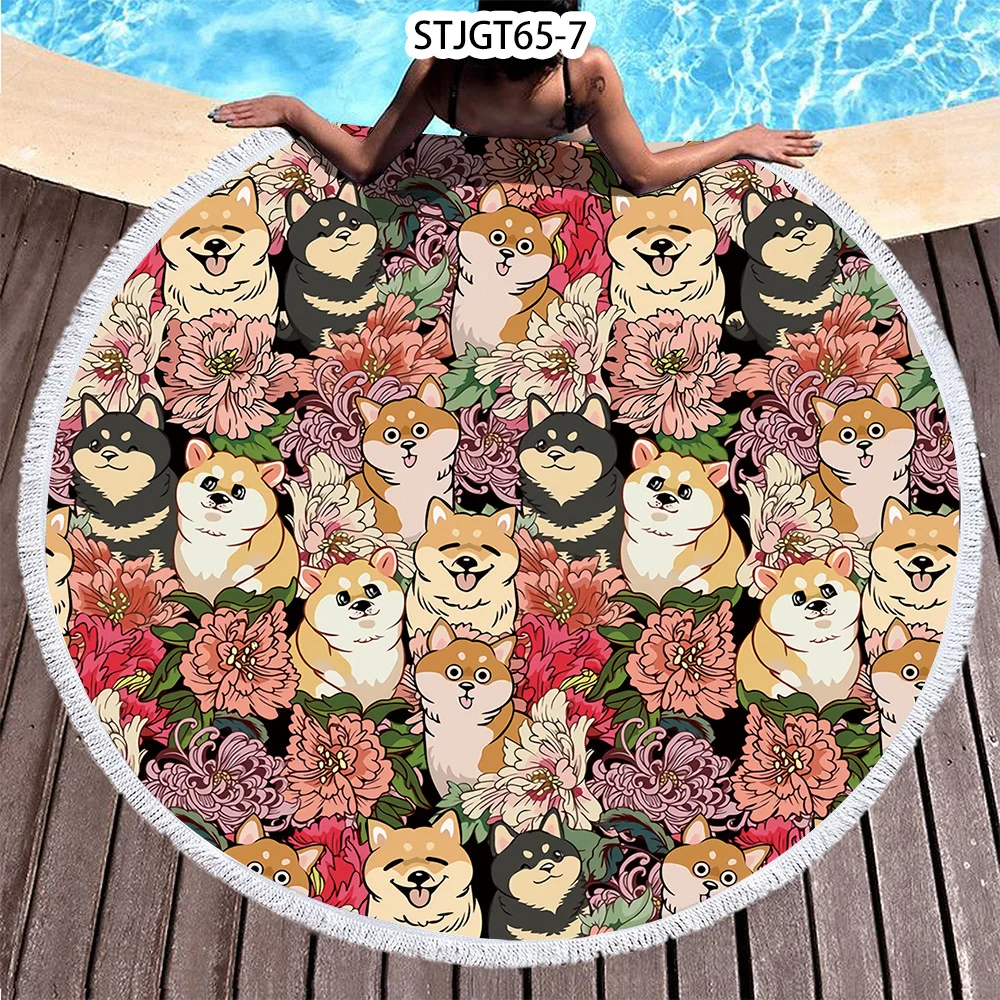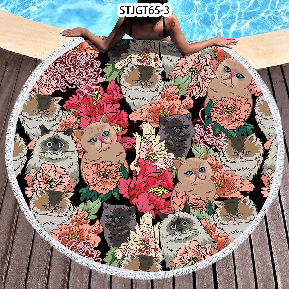Пляжное полотенце с кисточками и цветами для кошек, собак, милых животных, микрофибра, банное полотенце для взрослых, коврик для пикника, йоги, покрывало