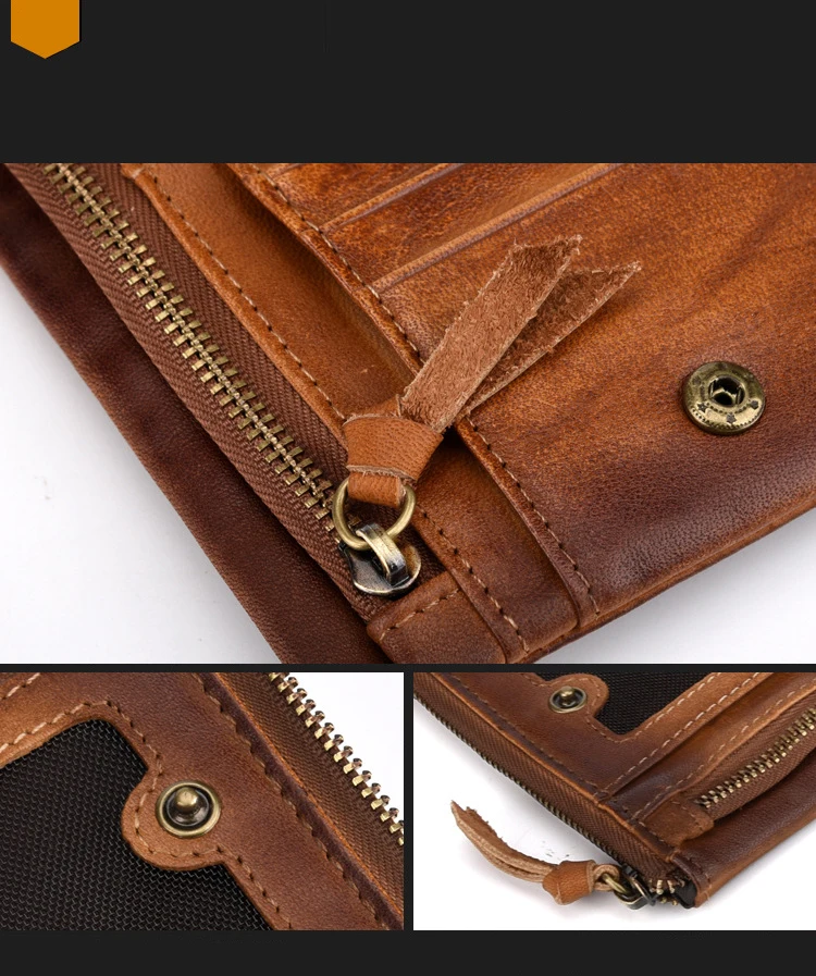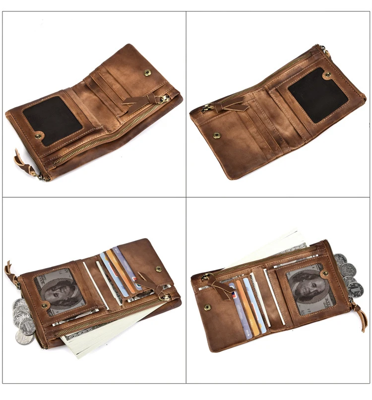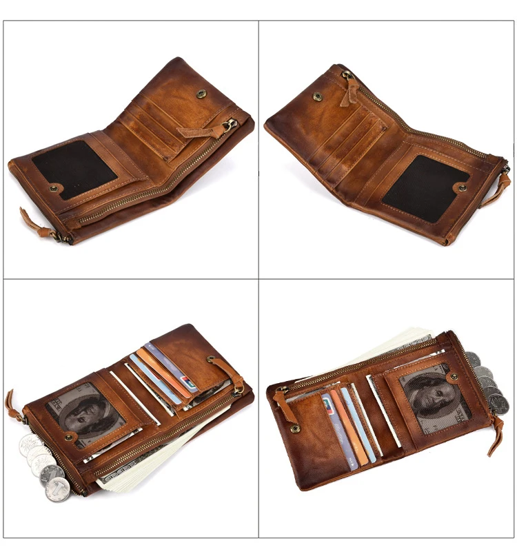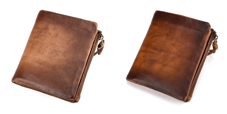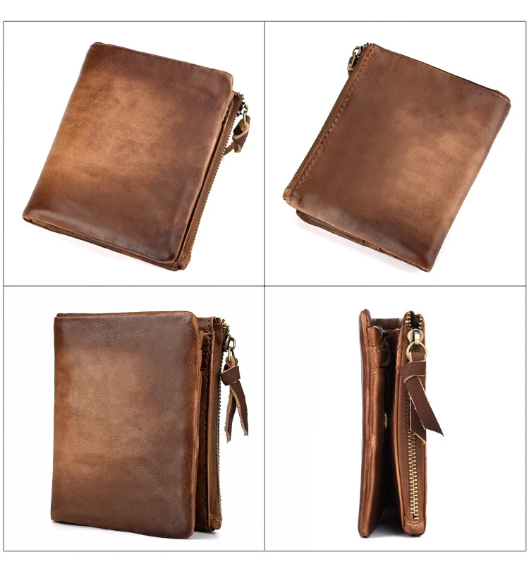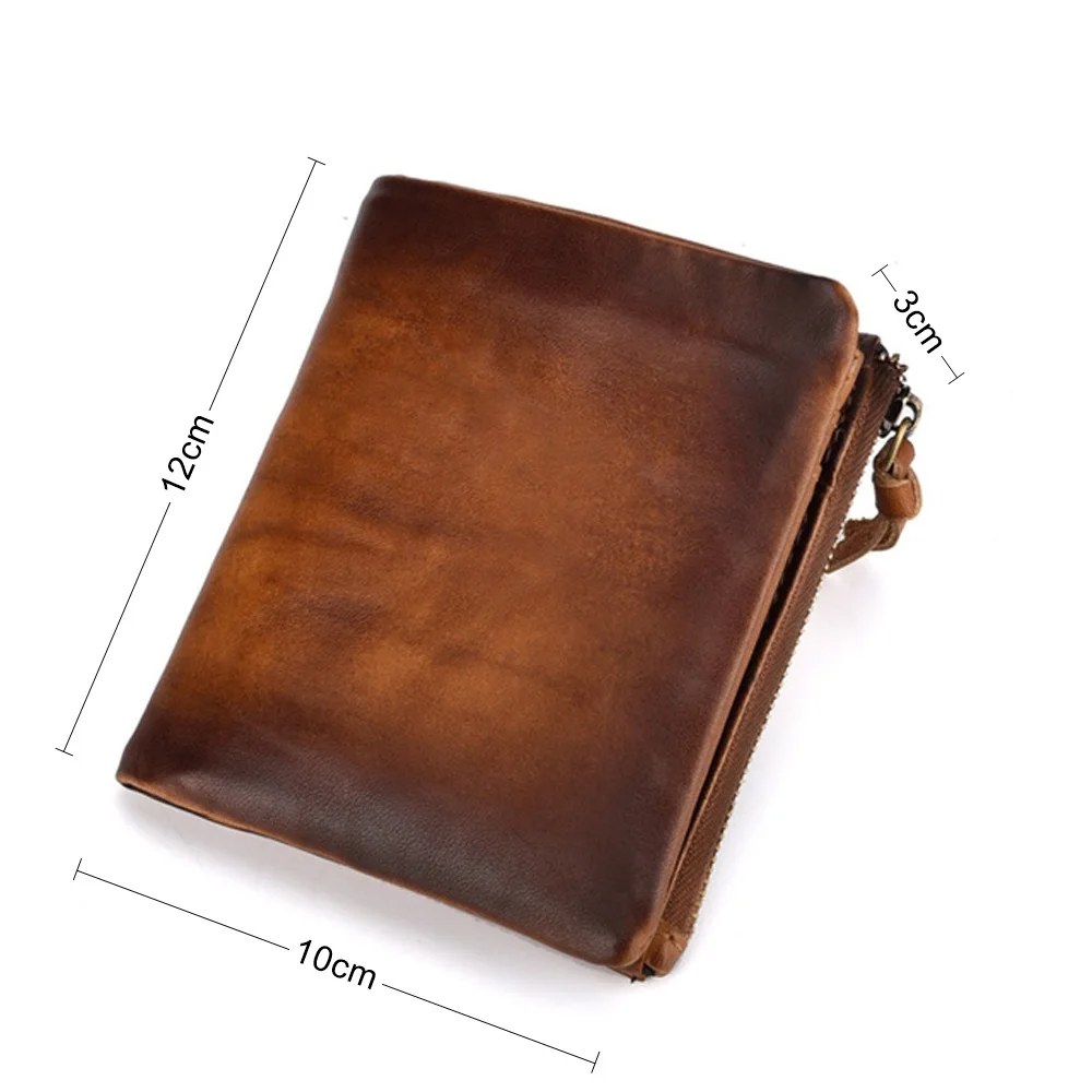 Удобный кошелек с двойной молнией, многофункциональные винтажные мужские бумажники из натуральной кожи
