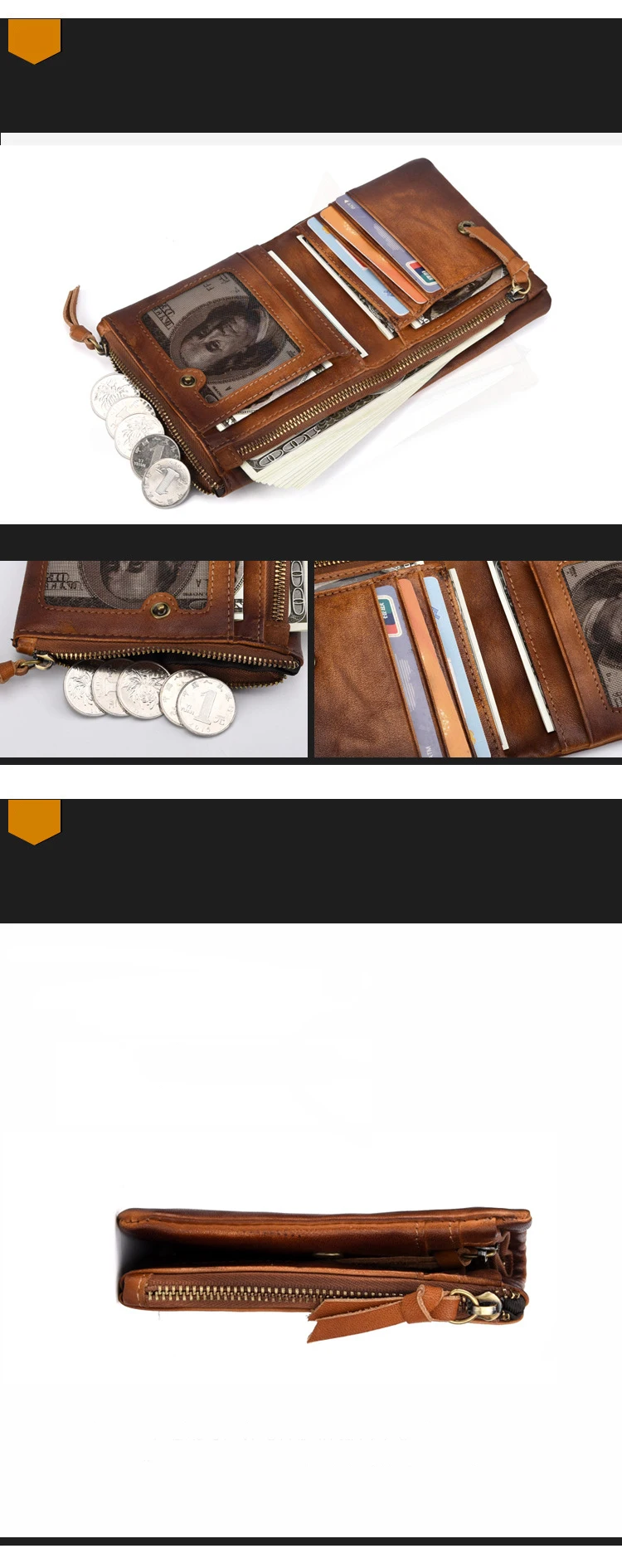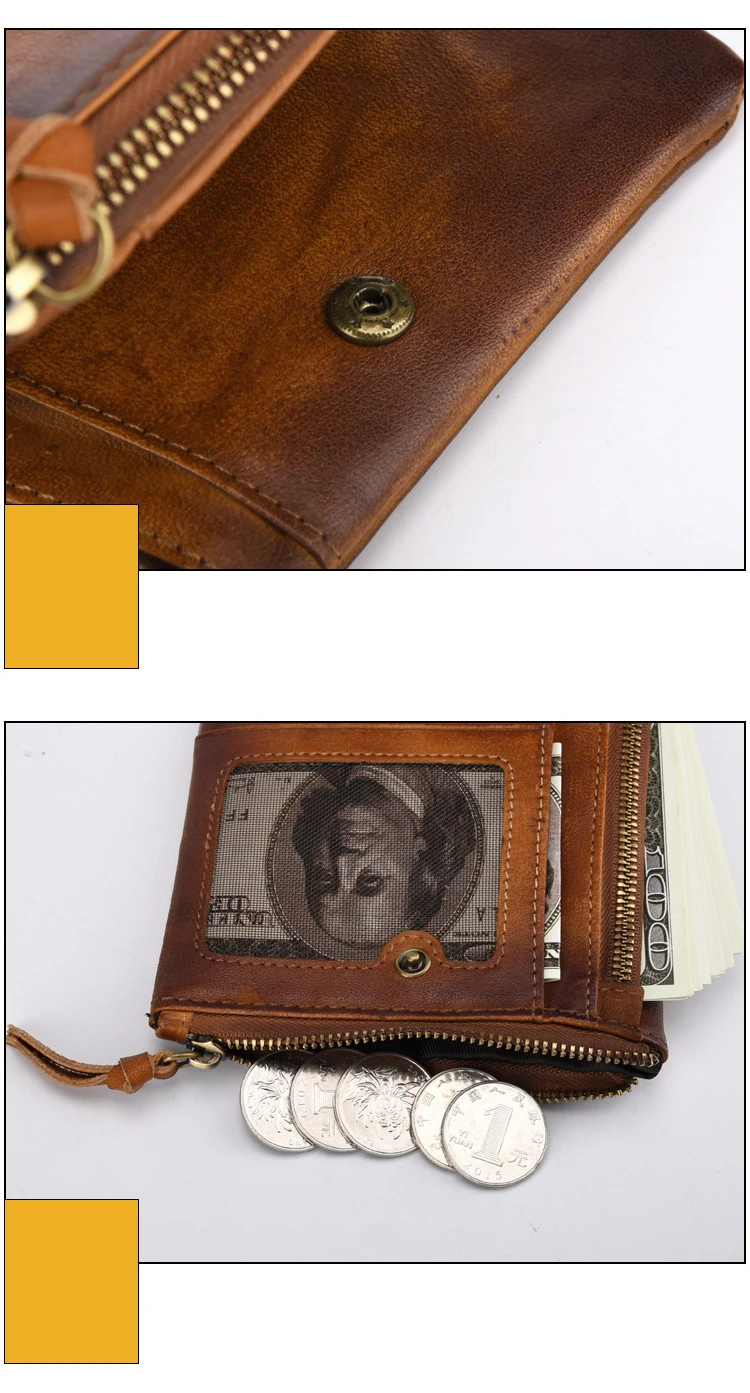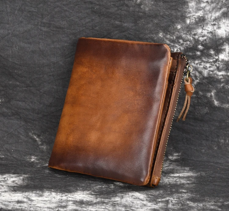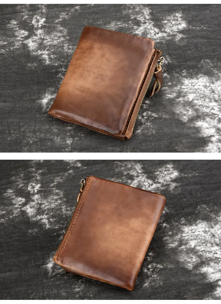 Удобный кошелек с двойной молнией, многофункциональные винтажные мужские бумажники из натуральной кожи