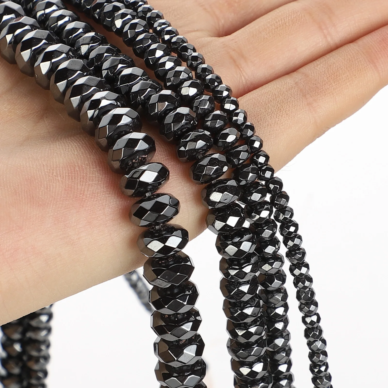 Толстые продолговатые ограненные гематит бусины из натурального камня Круглые бусины россыпью Аксессуары для браслета для самостоятельного изготовления ювелирных изделий 4-12 мм