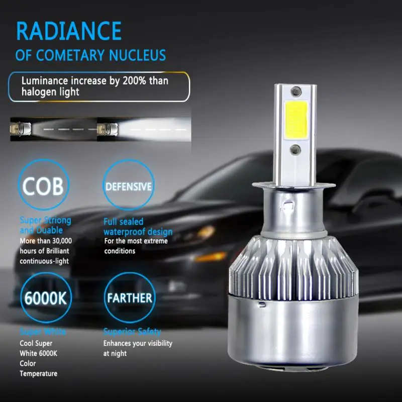 Автомобильный светодиодный головной светильник одинарная лампа дальнего света комплект 6000K белый светодиодный светильник X1 автомобильный светильник сборки автомобилей светильник s H3 1500W 225000LM COB