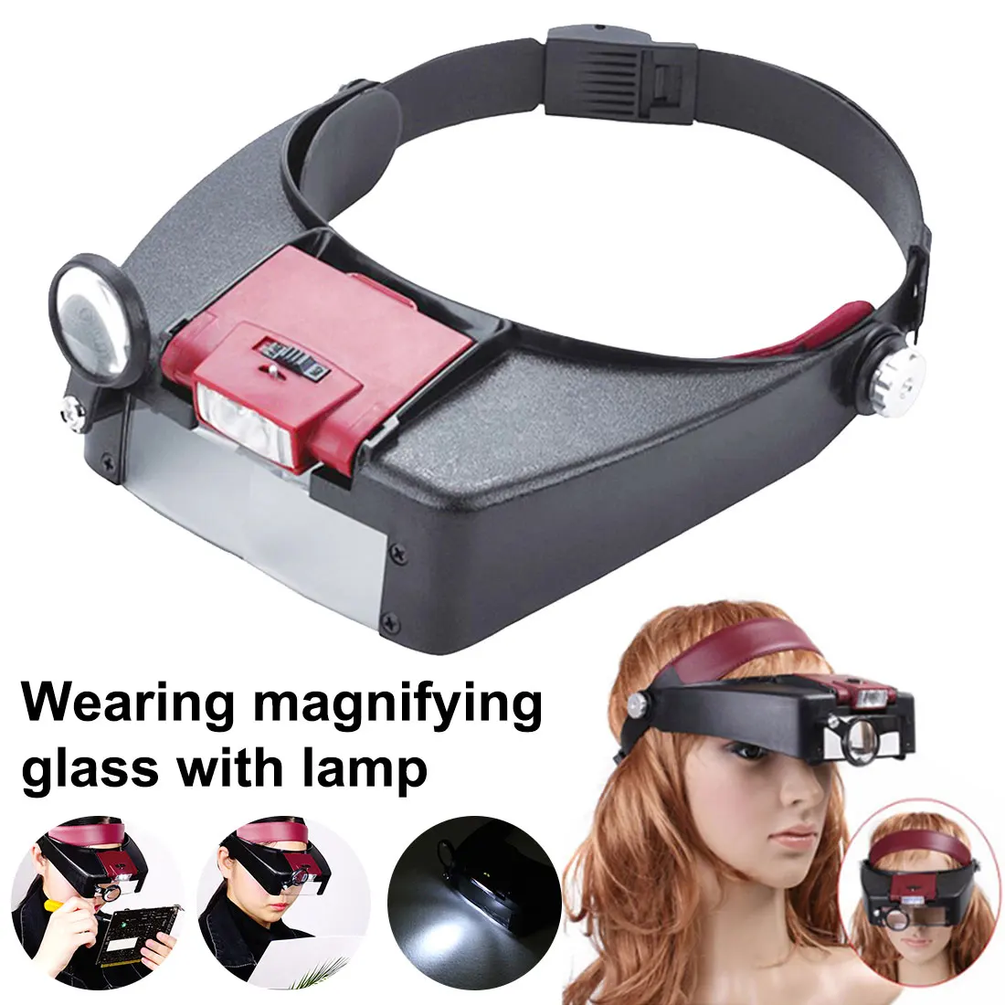 2. Применимый объем: легкая и удобная головная лупа для повседневного использования, любителей, искусства и ремесел, дизайна ювелирных изделий, моделирования, чтения, осмотра и других задач низкого видения.