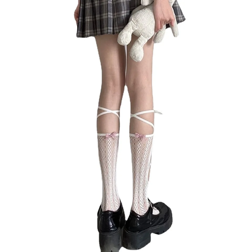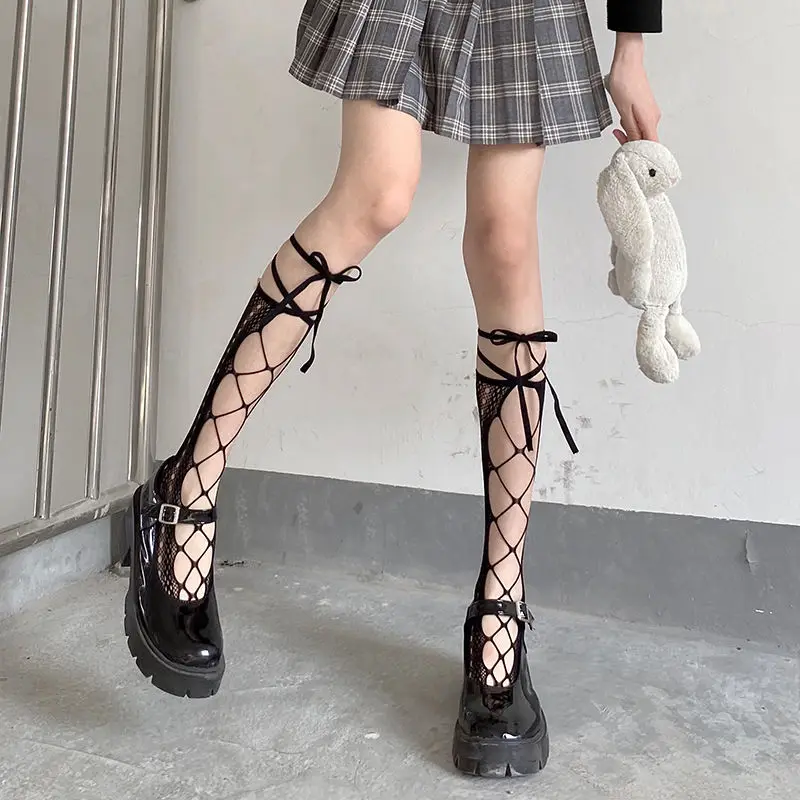 Черно-белые кружевные ажурные носки Lolita, женские японские ультратонкие индивидуальные ажурные до колена, милые сексуальные носки в студенческом стиле