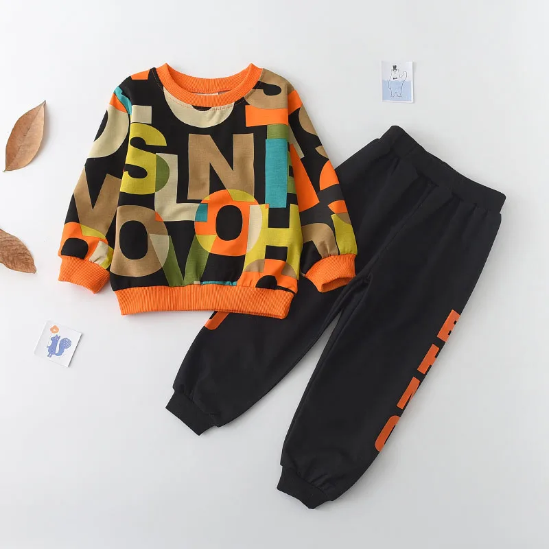 Keelornкомплект одежды для мальчиков 2021 Осень с длинными рукавами и с принтом разноцветные топы с принтом букв, штаны комплект одежды из 2 предметов для детей с героями мультфильмов, костюмы для активного отдыха