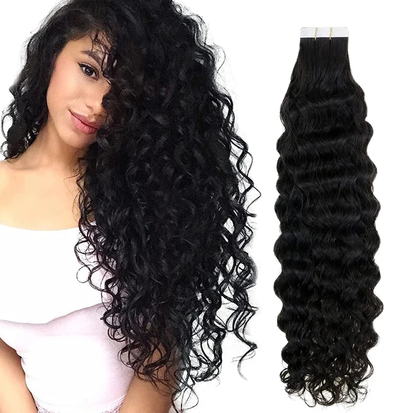 Длинные кудрявые ленты для наращивания человеческих волос, клейкие невидимые бразильские волосы Remy для наращивания, волнистые волосы 40 шт./100 г