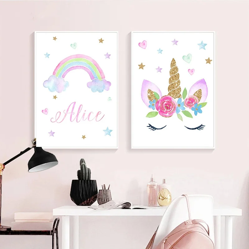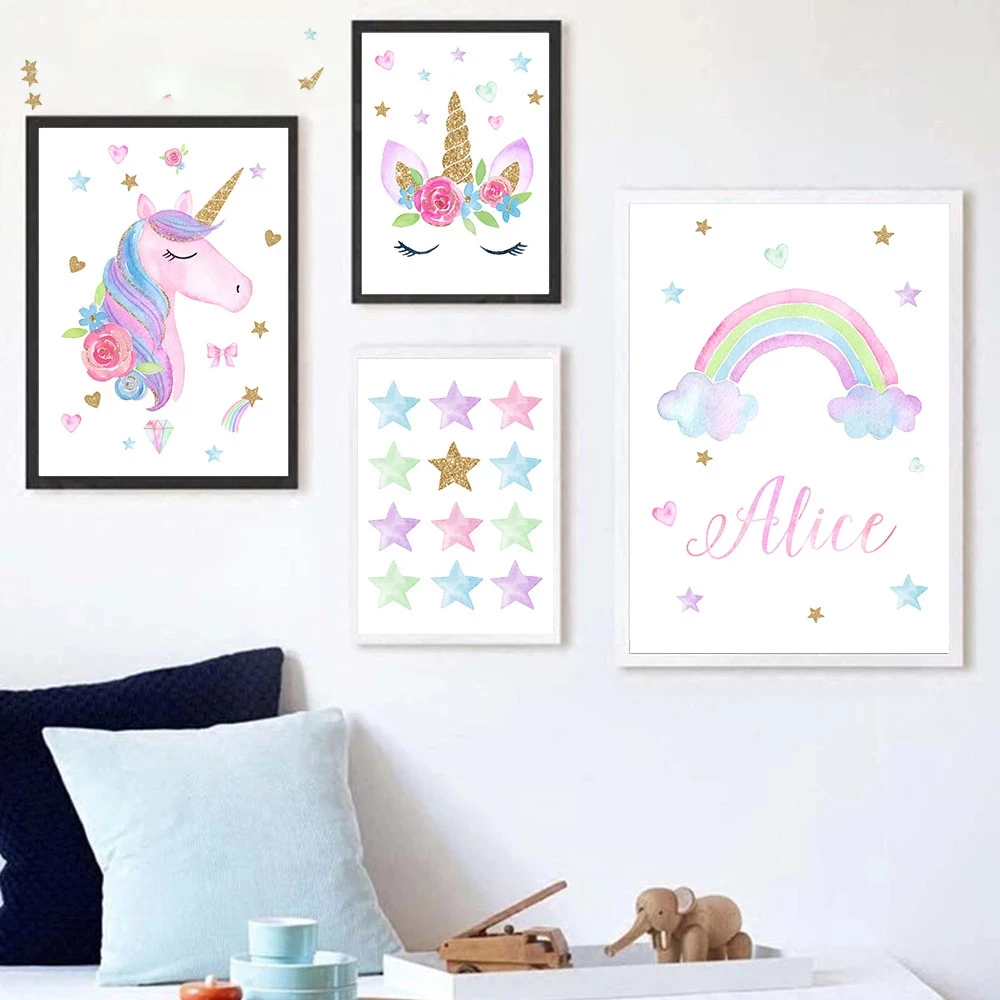 Постер в скандинавском стиле с именем на заказ, холст, плакаты, единорог, звезды, декор детской комнаты, искусственная живопись, цветы, настенные картины для детской комнаты icon star icon star icon star icon star icon star