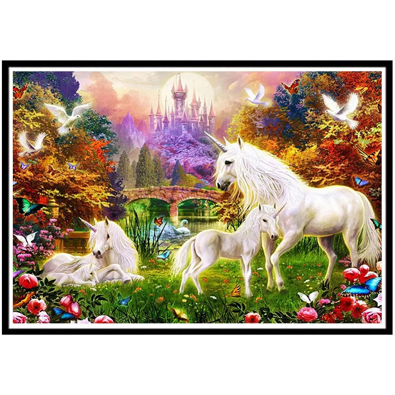 Алмазная 5D картина сделай сам, круглые животные, Пегас, пейзаж, вы...