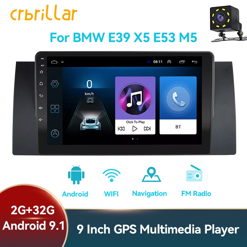 Автомагнитола для BMW E39 E53 X5 M5, мультимедийная стерео-система на Android, с 9 "сенсорным экраном, GPS, Bluetooth, 2 Гб ОЗУ, 32 Гб ПЗУ, типоразмер 2 Din