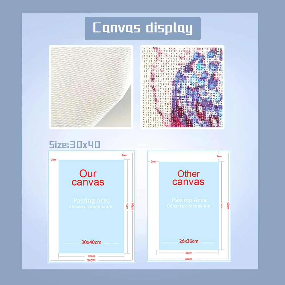 5D алмазная картина сделана из высокопрозрачного напечатанного холста, водонепроницаемого, нетоксичного, экологически чистого и не легко складывается